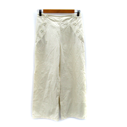 シップス SHIPS ワイドパンツ ロング丈 無地 リネン混 38 アイボリー /SY32 レディース
