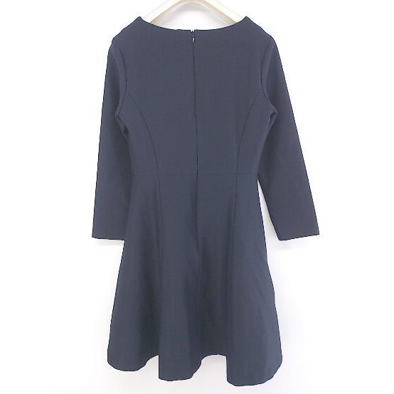 ◇ NATURAL BEAUTY BASIC ナチュラルビューティーベーシック Vネック 長袖 ミニ ワンピース サイズS ネイビー レディース P