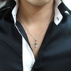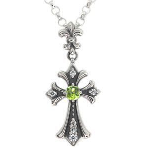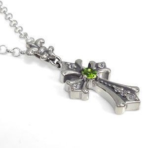 8月誕生石ペリドットを一粒使用した、クロス&百合の紋章デザインのシルバー製メンズネックレス・ペンダントです。