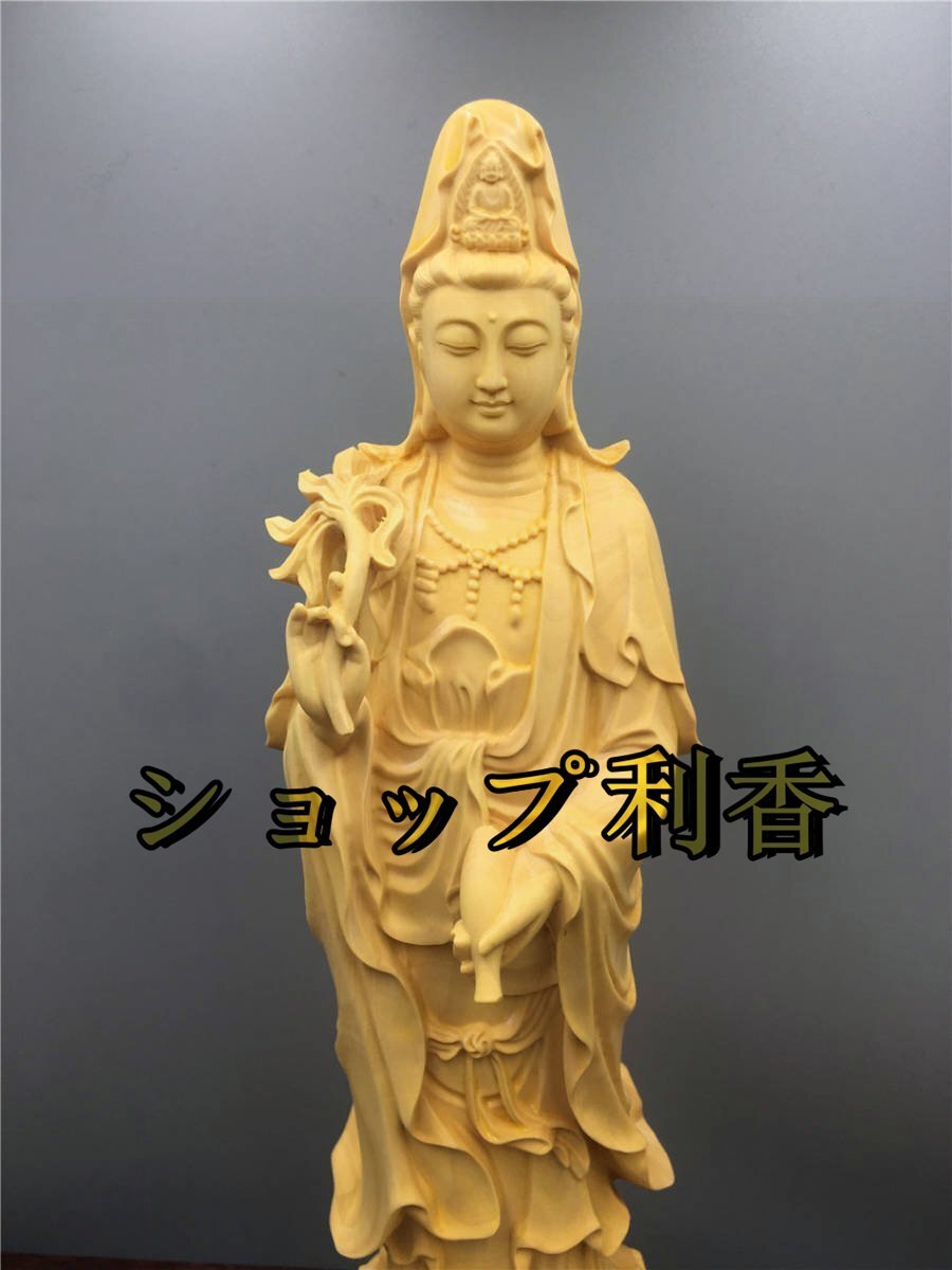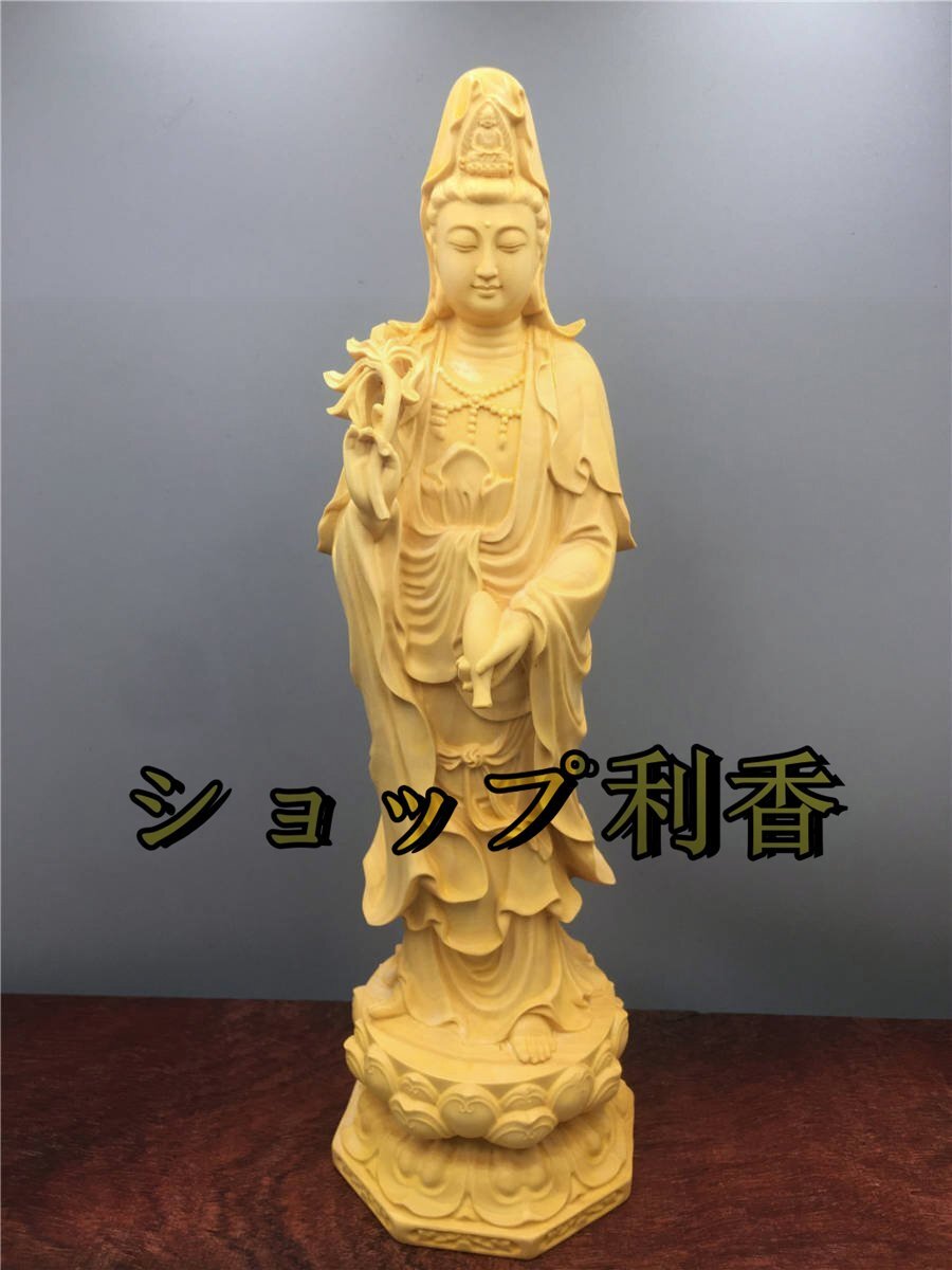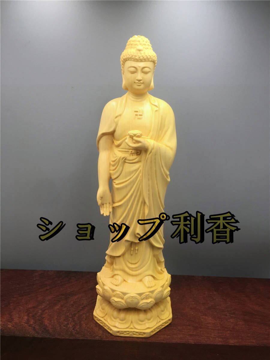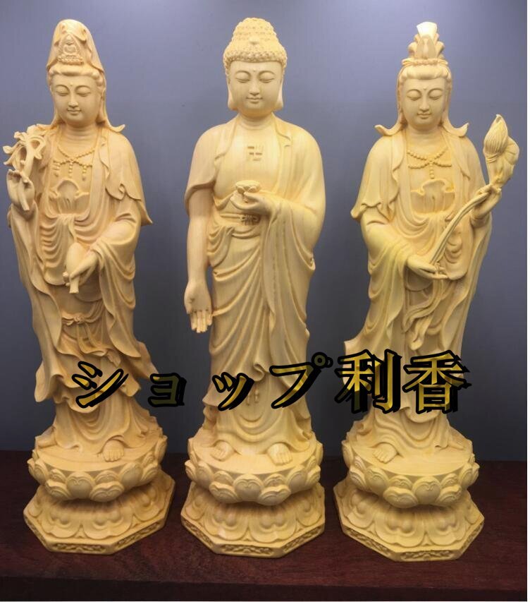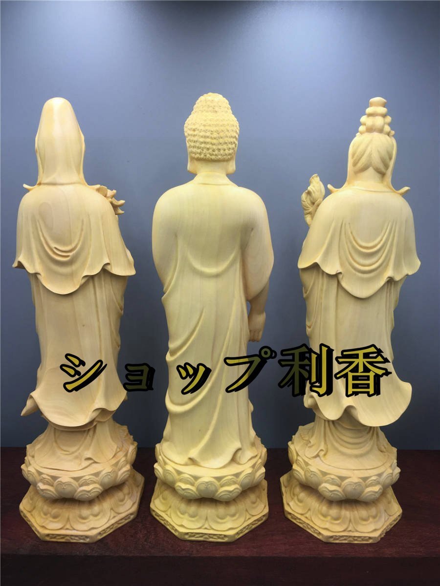 極上品◆黄楊木彫西方三聖居宅供養仏堂阿弥陀観音菩薩実木彫刻置物 高さ20cm