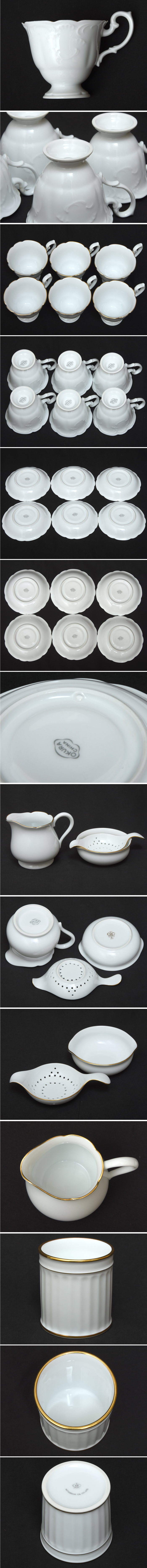大倉陶園 白磁 金彩 カップ&ソーサー6客 ミルクピッチャー ティーストレーナー スプーンスタンド |