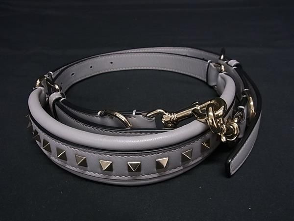 ■美品■ VALENTINO ヴァレンティノ ロックスタッズ レザー バッグ用 ショルダーストラップ 肩掛け グレー系 AV8717