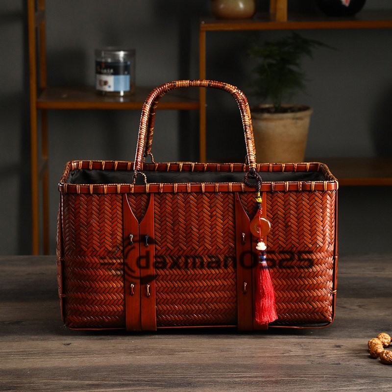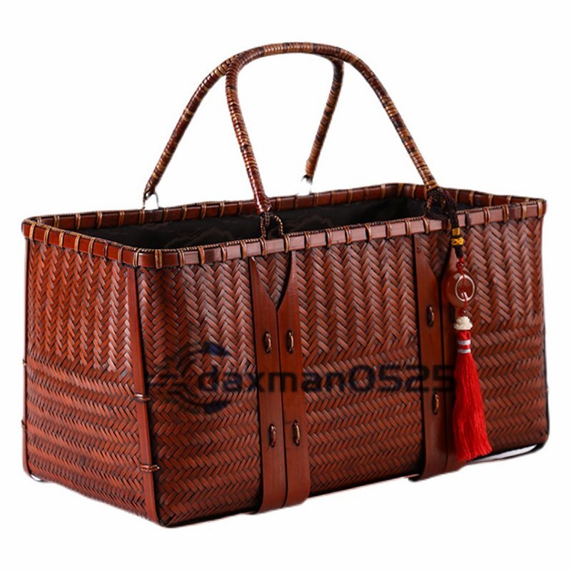 人気新品 バスケット 収納かご おしゃれ竹籠 編み 取っ手 持ち手  手作りトートバスケット 自然の良品 大容量