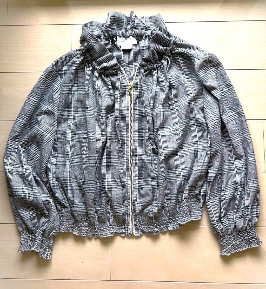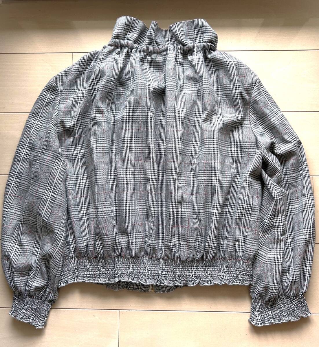 女性らしいチェック柄で、首元や袖元のフリルが素敵です。