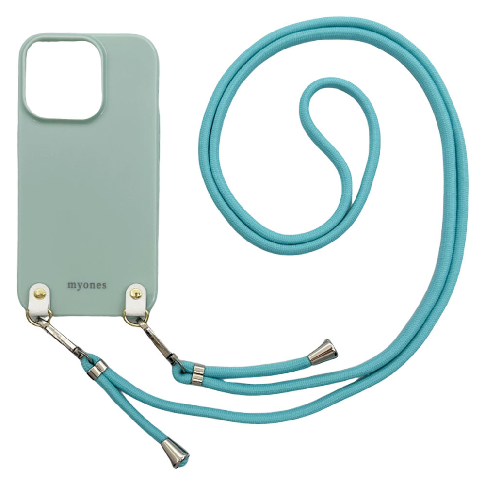 iPhone8 7 iPhoneSE2 SE3(くすみグリーン/ミント)ひも TPU ストラップ 肩掛け 首かけ 斜めが スマホケース かわいい