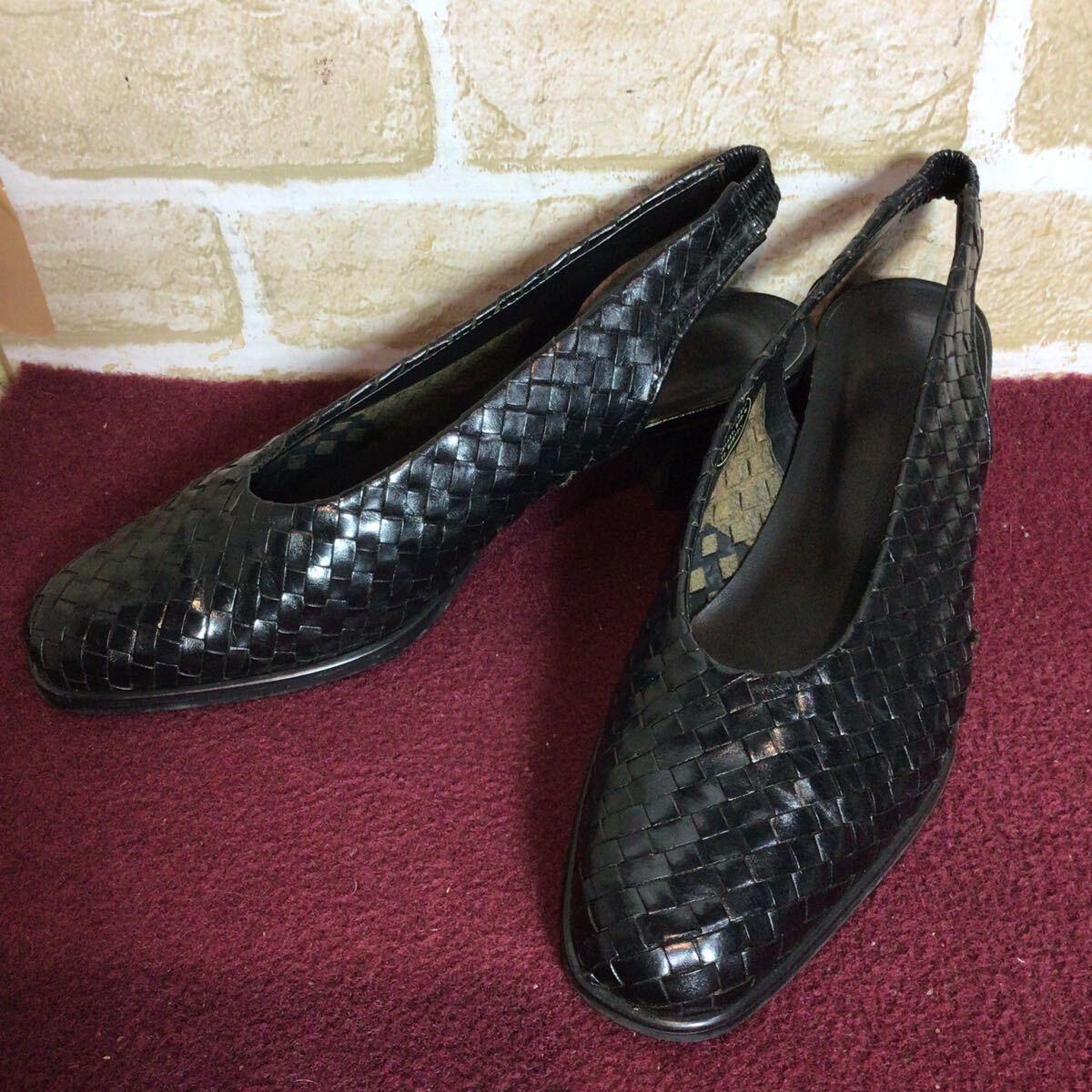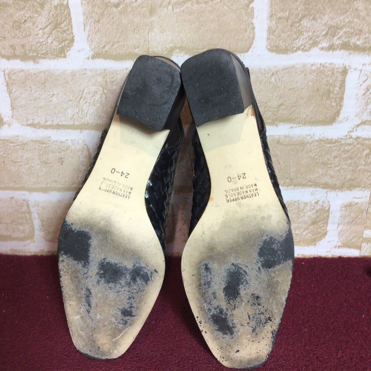 【売り切り!送料無料!】A-337 ZINNIA CLUB!パンパス!アンクルストラップ!24.0cm位!メッシュ編み!黒!太めヒール!ブラジル製!中古!