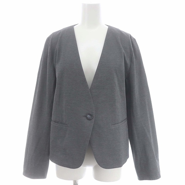 タルボット TALBOTS ノーカラー 1B ジャケット ブレザー 10 XXL グレー /AT ■OS ■SH レディース