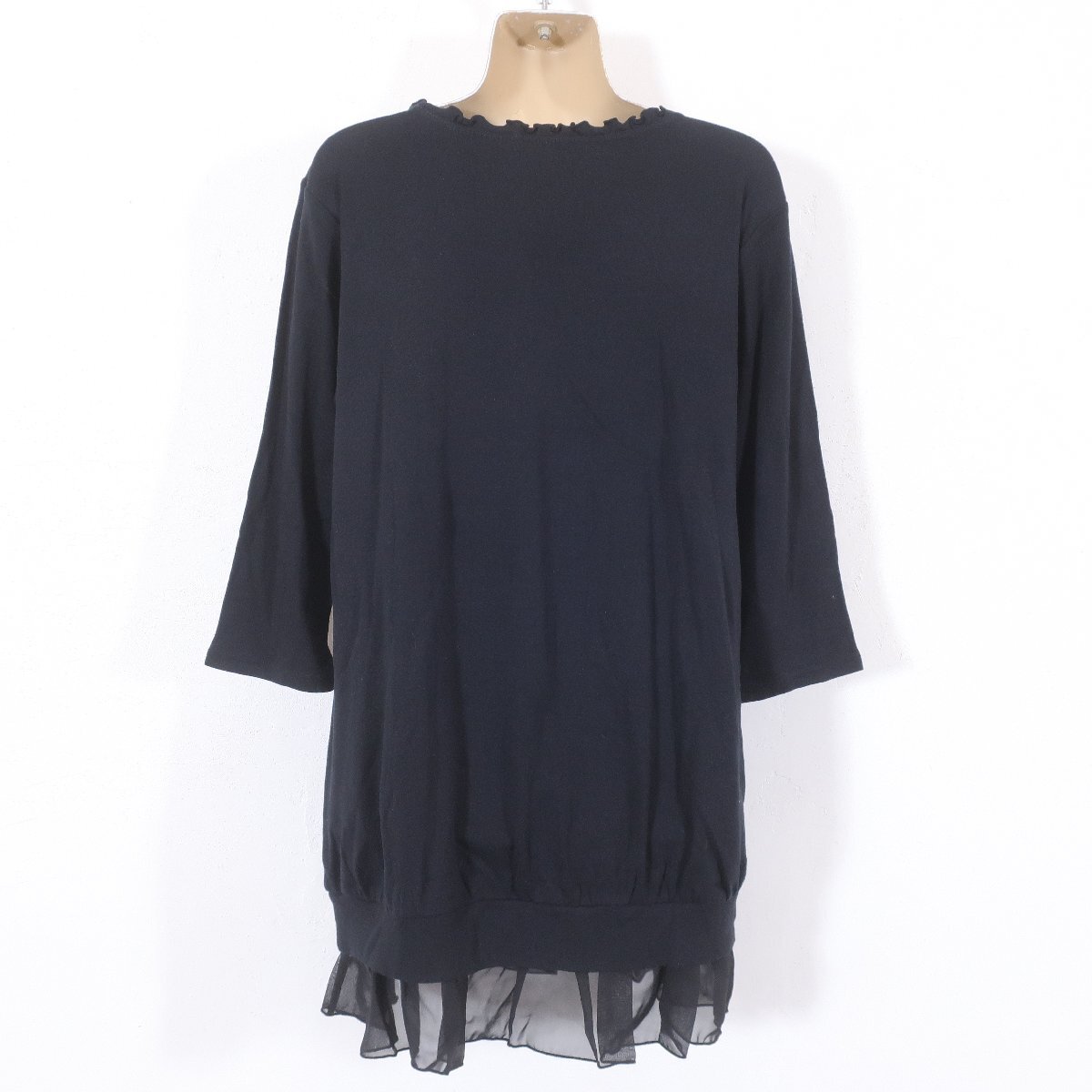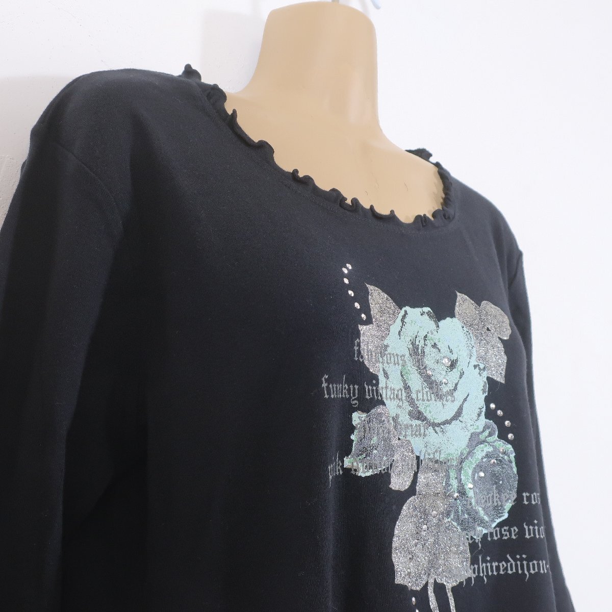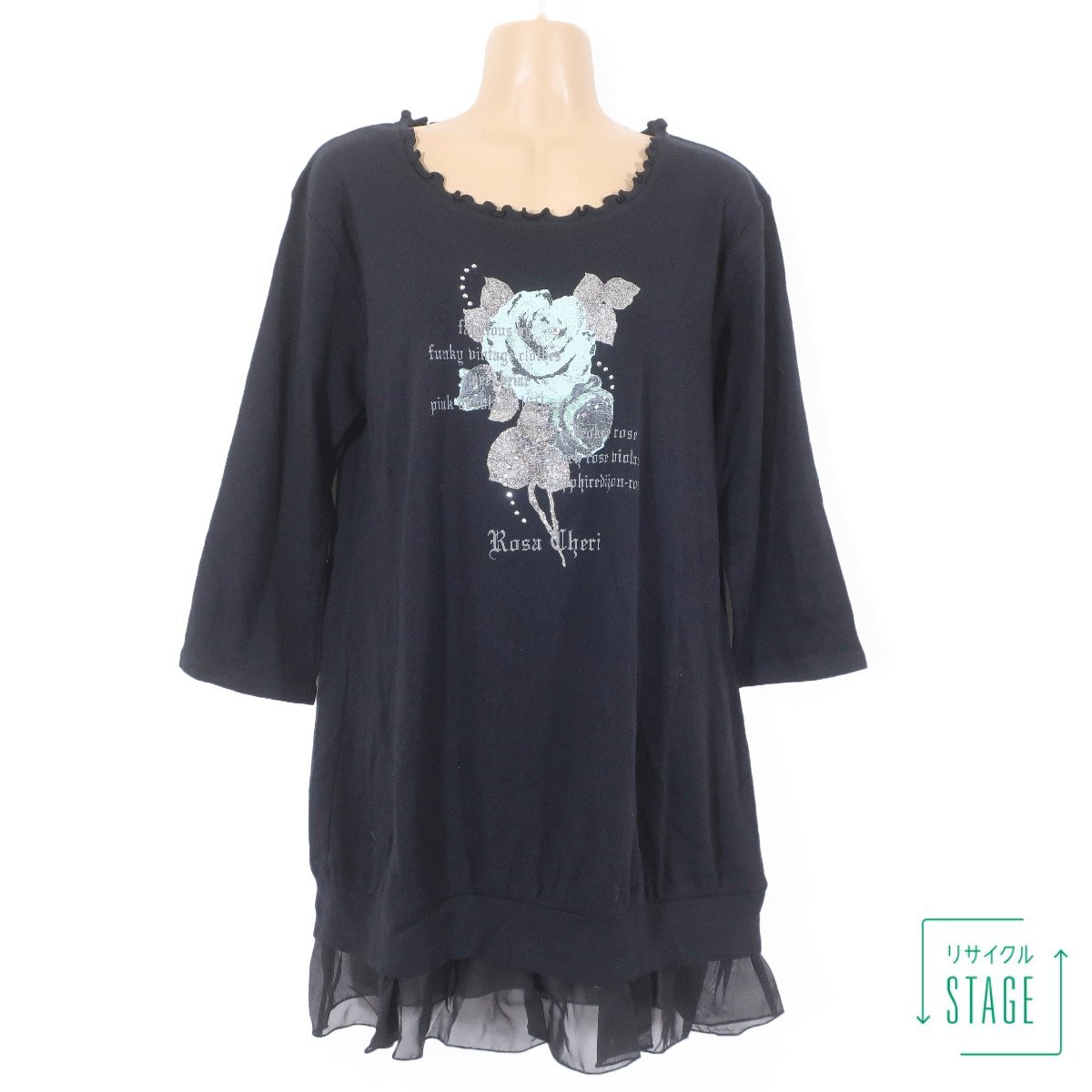 【新品】住商 オットー Otto★可愛い! 薔薇プリント&裾フリルデザイン カットソー生地 チュニック 大きいサイズLL 黒系 *z6988