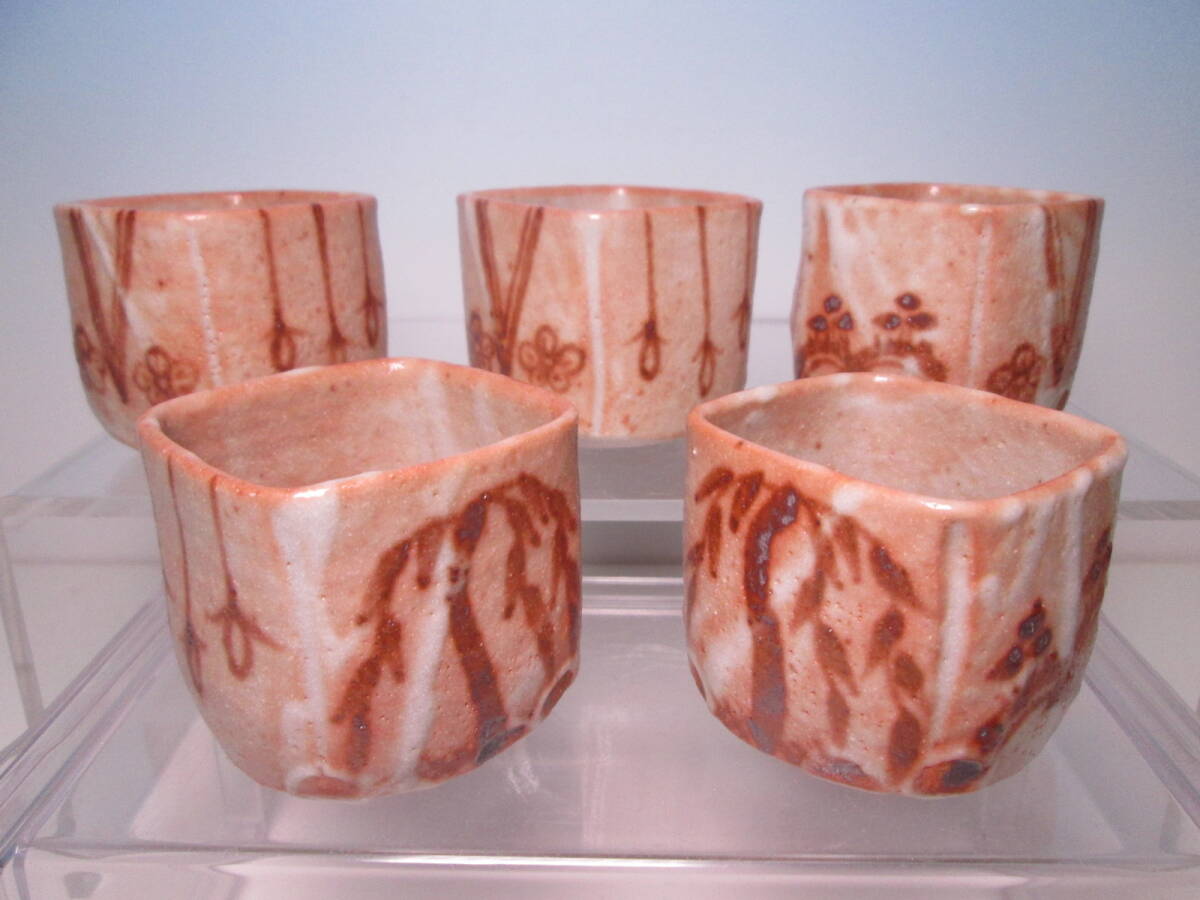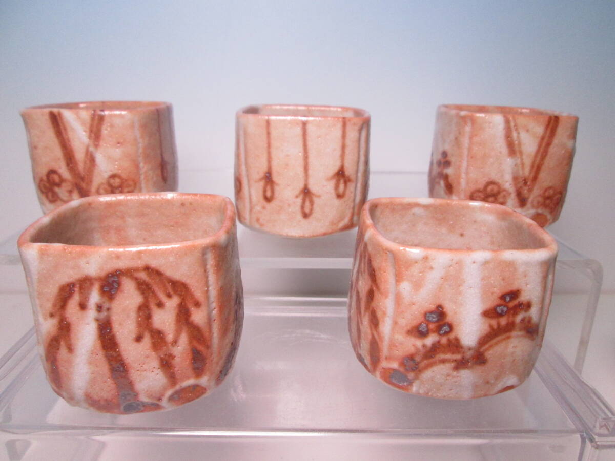 ☆お料理屋さんの器 源作 志野焼 四方小向付 五客 小鉢/懐石/割烹/日本料理