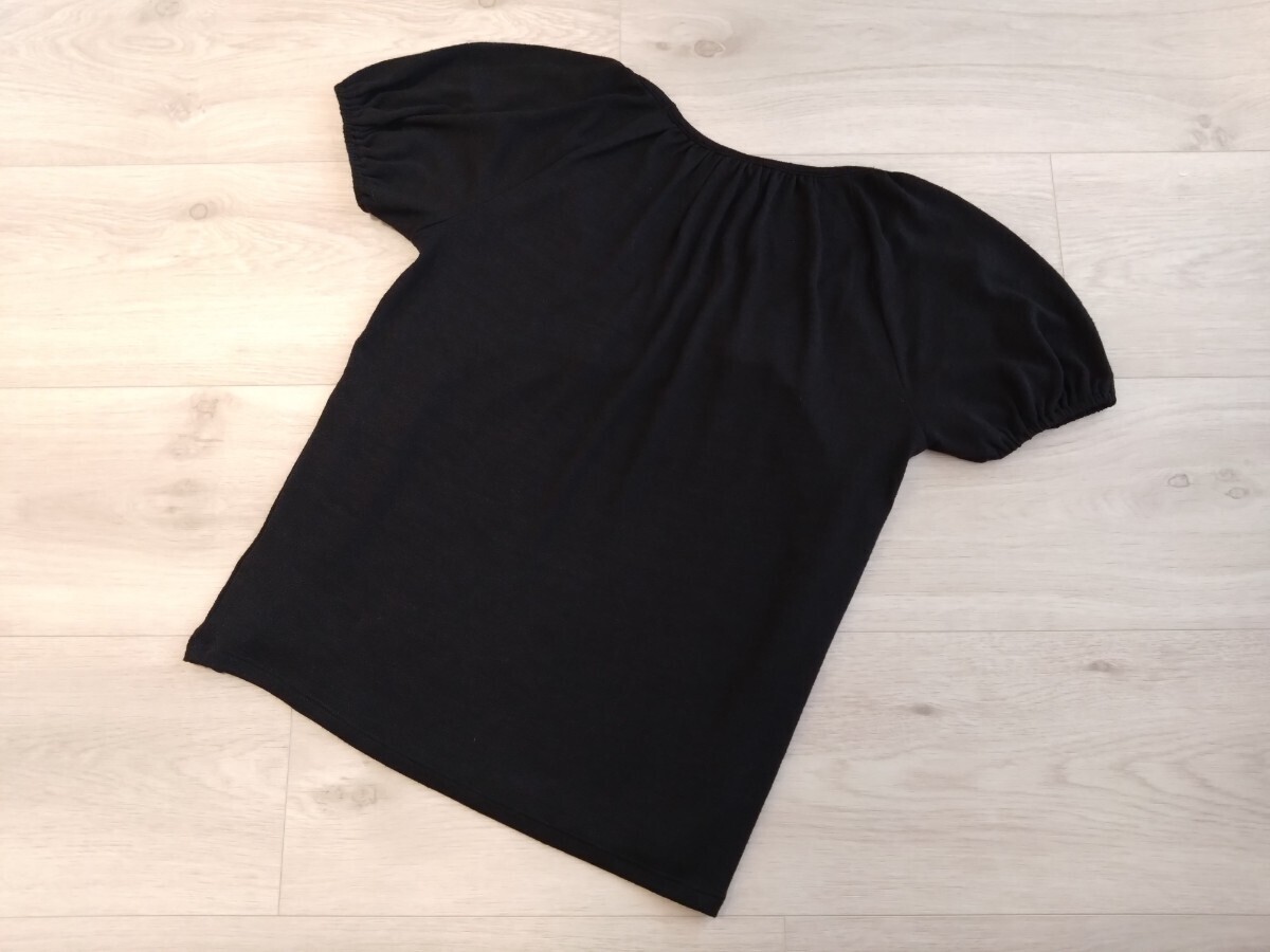 首元はシャーリング、お袖はパフスリーブとなっているデザインです。