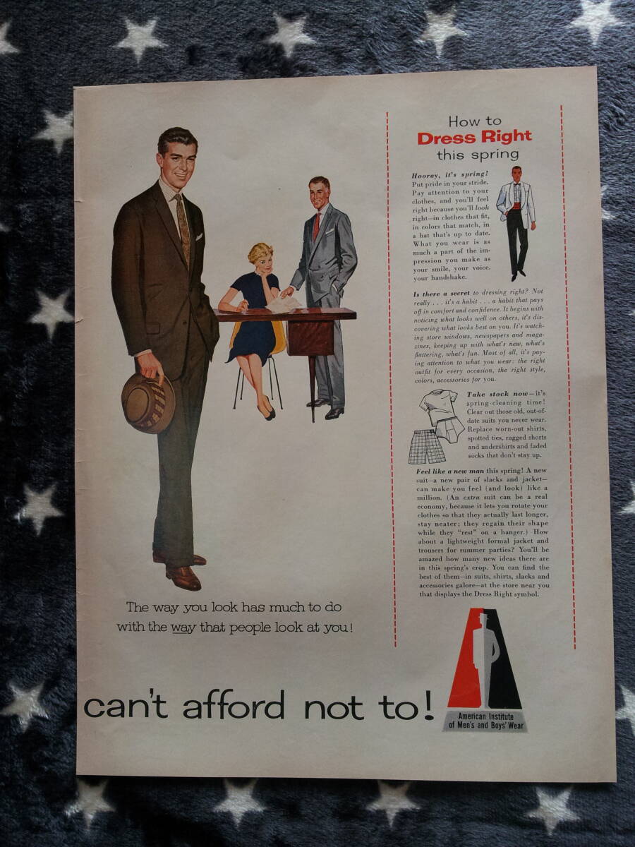 i即決【mid-century advertising/LIFE/POST/広告306】スーツ/アンダーウェア/1957年/ミッドセンチュリー/アメリカンカルチャー