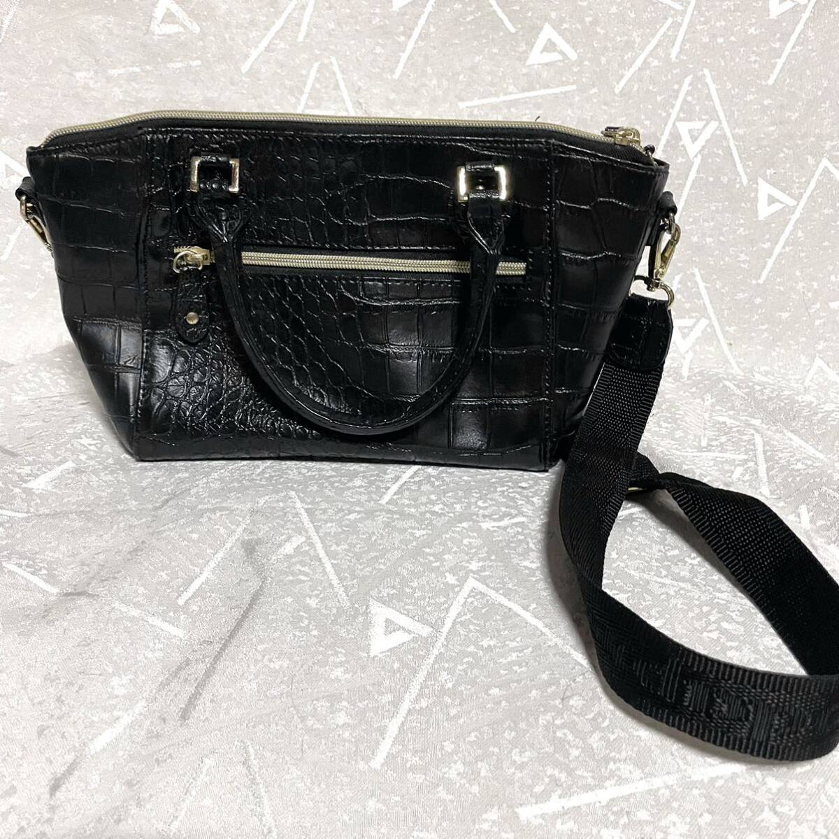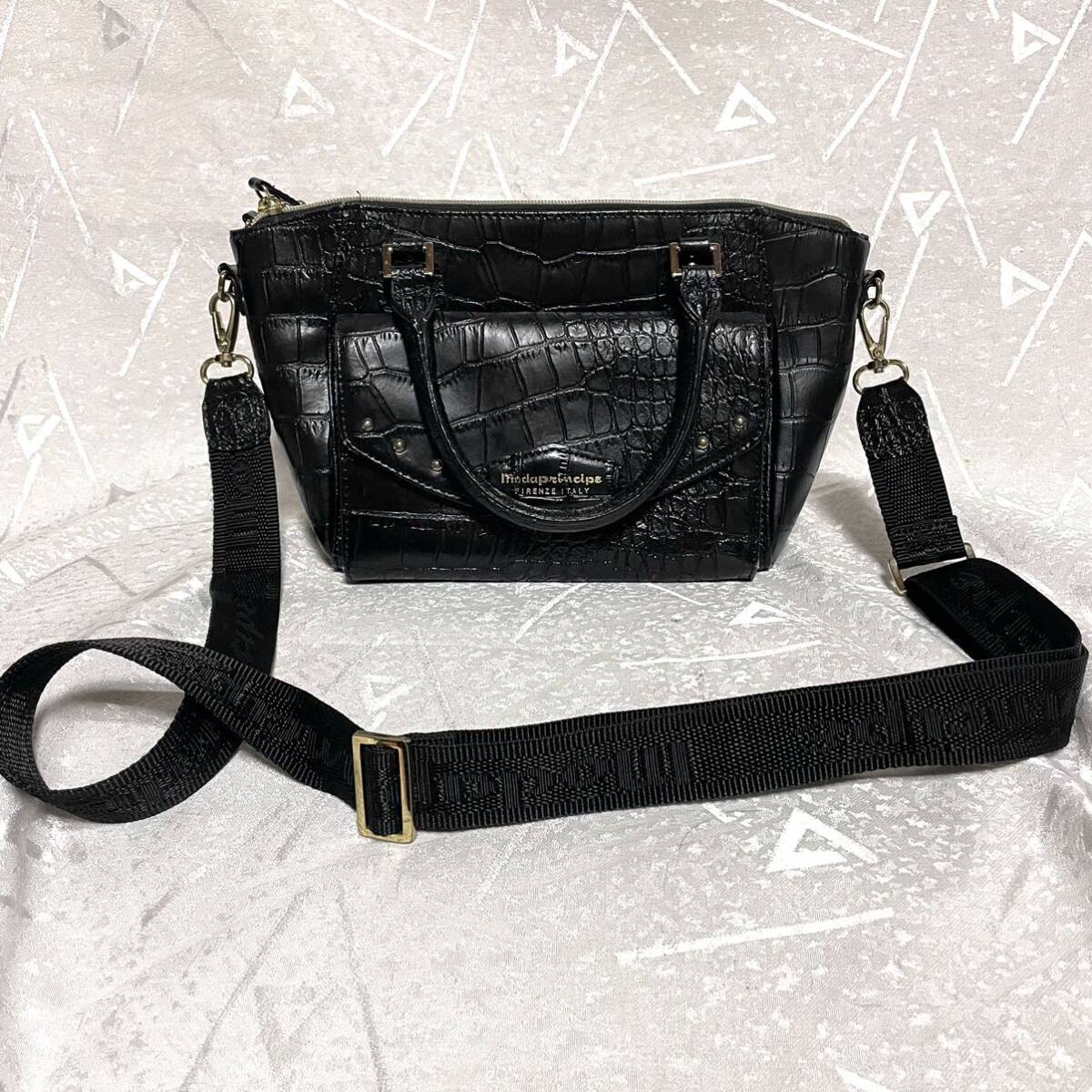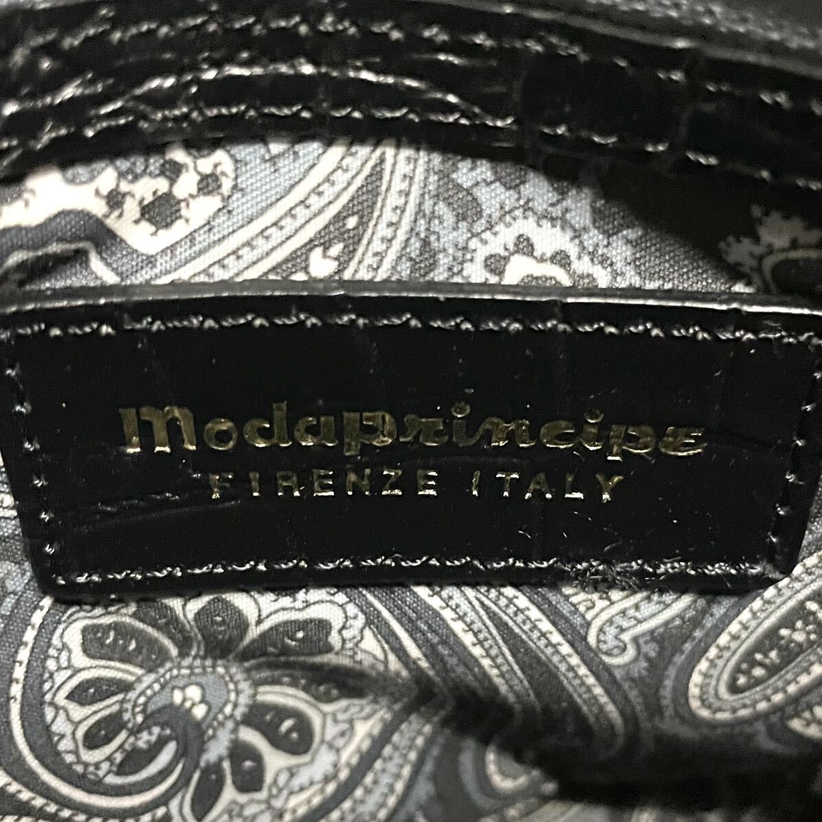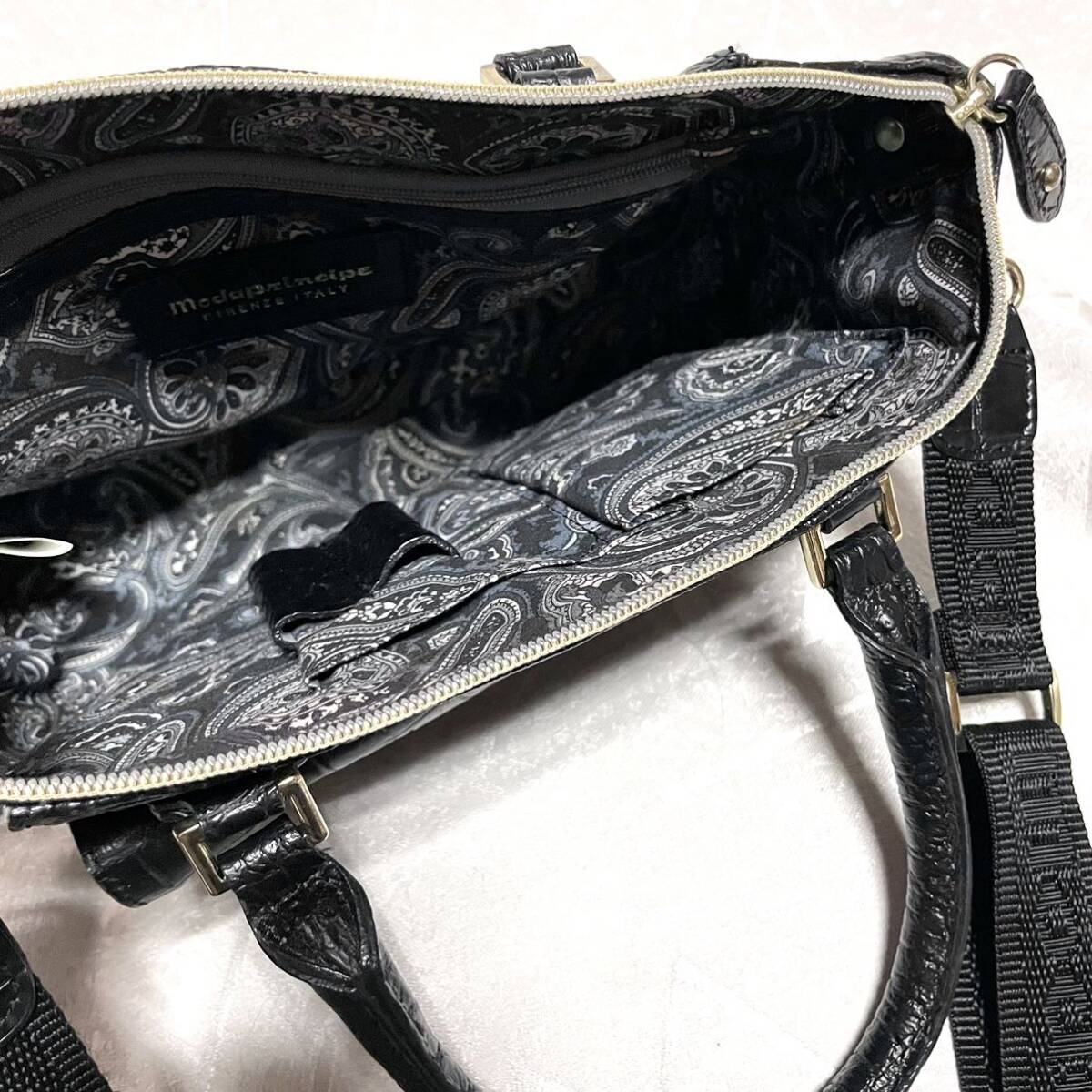 美品【MODAPRINCIPE/モーダプリンチペ】2WAYバッグ ショルダーバッグ ハンドバッグ クロコダイル型押しレザー 黒/ブラック