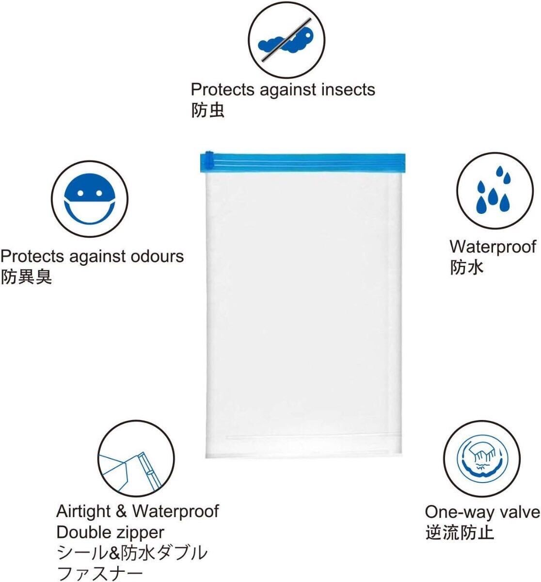 優れた密封性: 圧縮袋はダブルジッパーを採用してシールします。しっかりシールして空気が入れません。真空状態で収納されていますので、湿気、埃、ダニやカビなどの侵入を防ぎ、常に清潔に保管して頂けます。