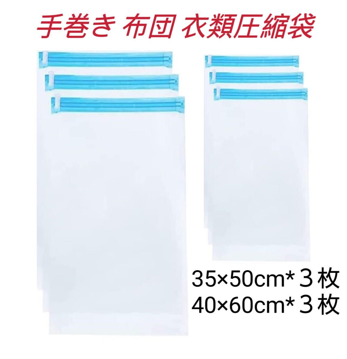 【スペースを節約】衣類圧縮袋40×60cm3枚、35×50cm3枚 、合計で6枚があります。衣類、タオル、シーツ、枕カバーなど家庭用品を簡単に収納でき、最大80%の収納スペースを省くことができます。