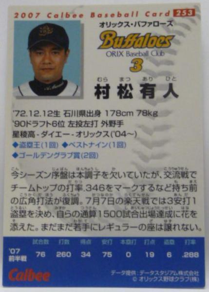 カルビープロ野球カード2007年#253【村松 有人(オリックス バファローズ)】平成19年チップスおまけ食玩トレーディングカード【中古】送料込
