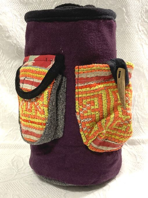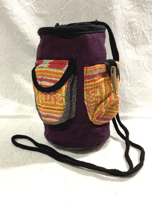 確認項目●素材:コットン、モン族古布 ●サイズ縦×横 (約)19×16cm  底面 (約)直系10㎝ 肩紐 (約) 130cm