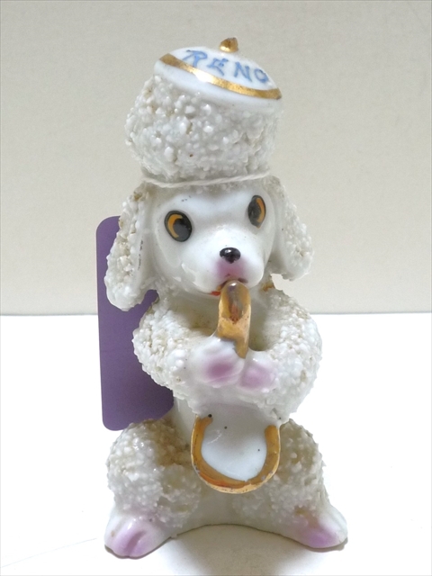 50’s ビンテージ プードル 犬 陶器製 スパゲッティーヘアー 楽器 サックス 置物 飾り 日本製 ディスプレイ インテリア◆ロカビリー
