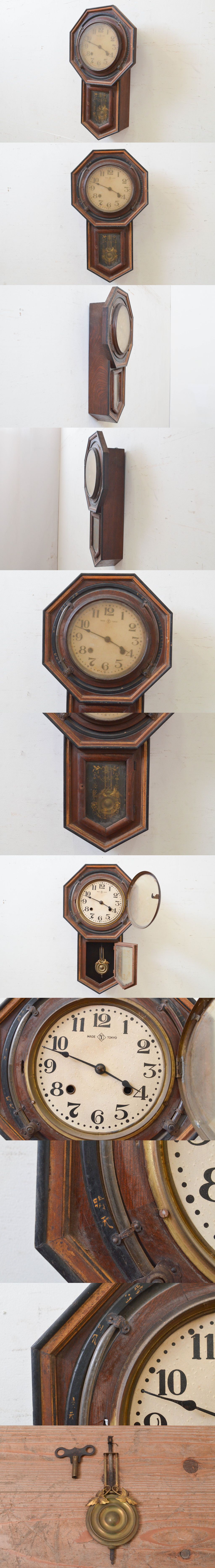 R-072245 アンティーク時計 大正期 タカノ(高野精密工業) 落ち着いた雰囲気のシックな壁掛け時計(柱時計、古時計、振り子時計、八角時計)