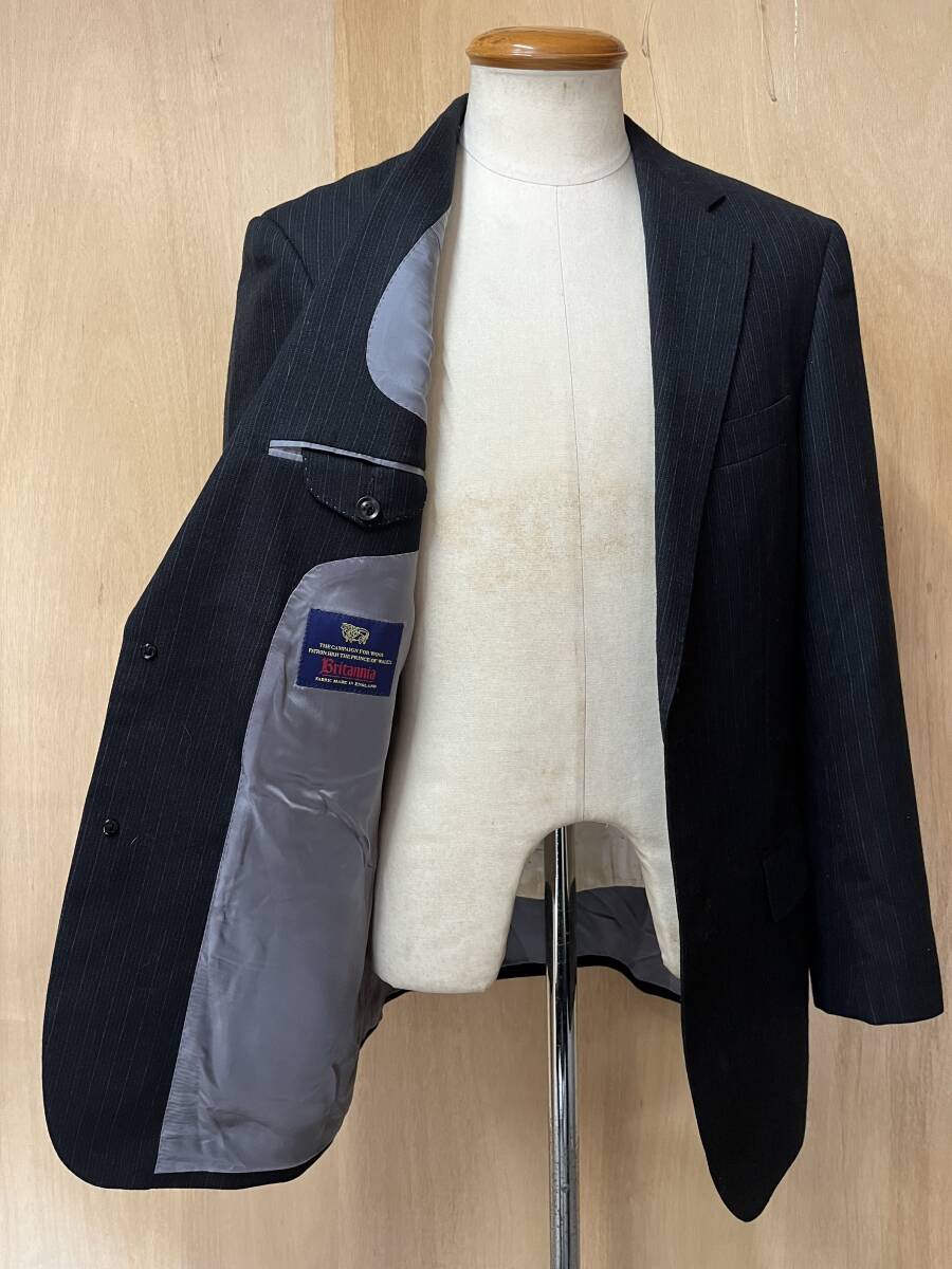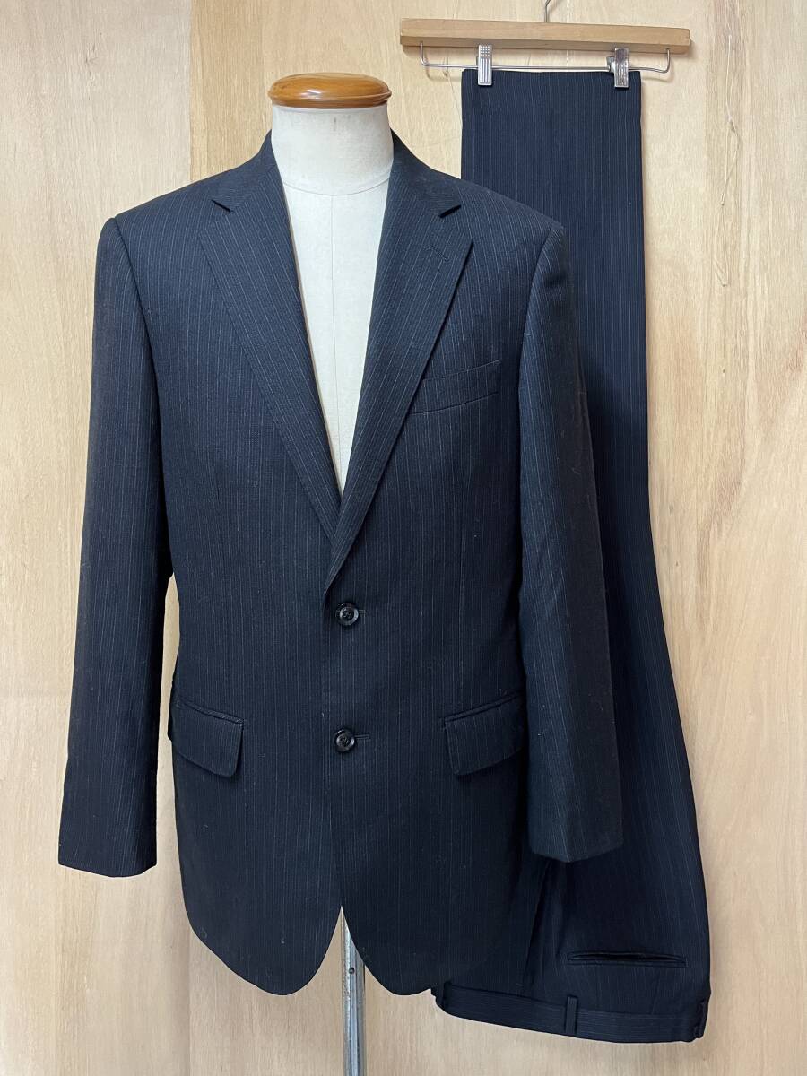 | 美品 Savile Row サビルロウ イングランド製生地 シャドーストライプ シングルスーツ チャコールグレー サイズA7 | ||