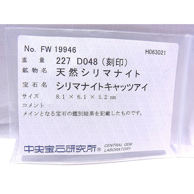 材質/仕様 | Pt900 プラチナ シリマナイトキャッツアイ 2.27ct ダイヤ 0.48ct |
