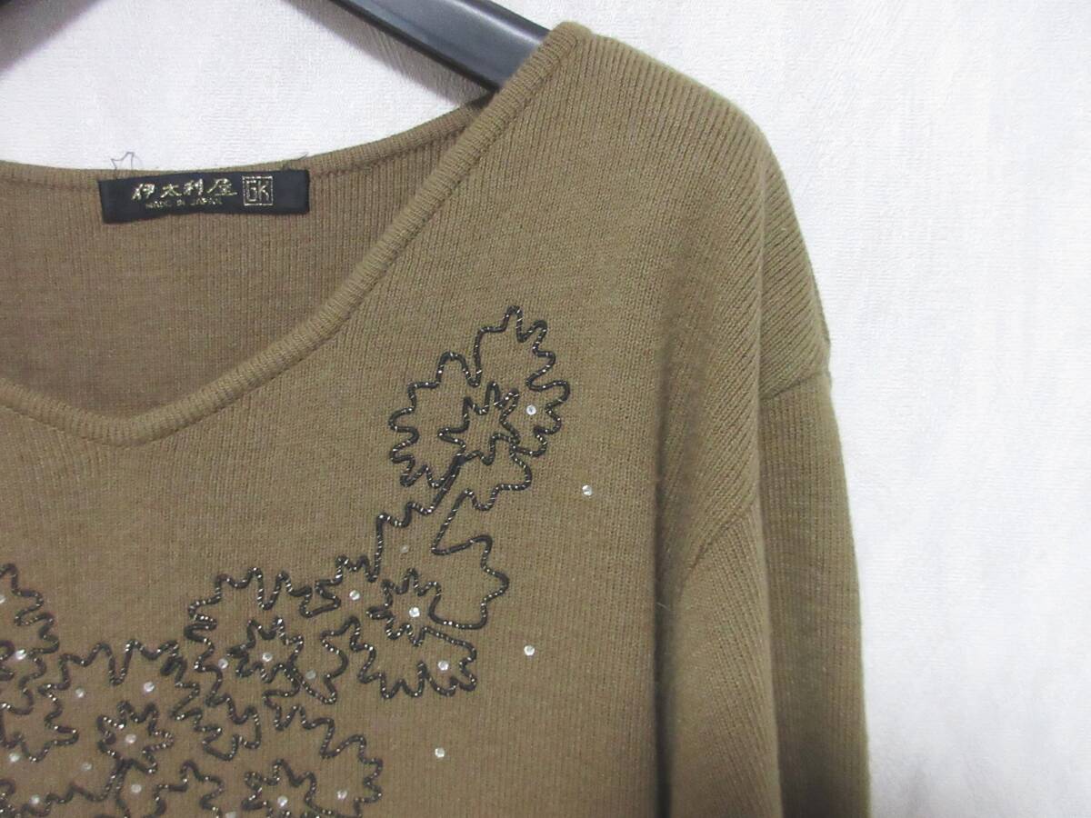 イタリヤ 伊太利屋 ラインストーン付き ニット セーター 茶 ブラウン 9A2 亥4835