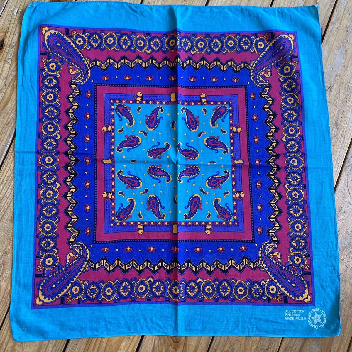 アメリカで購入したセカンドハンド(古着)の、 ペイズリー柄のバンダナです。