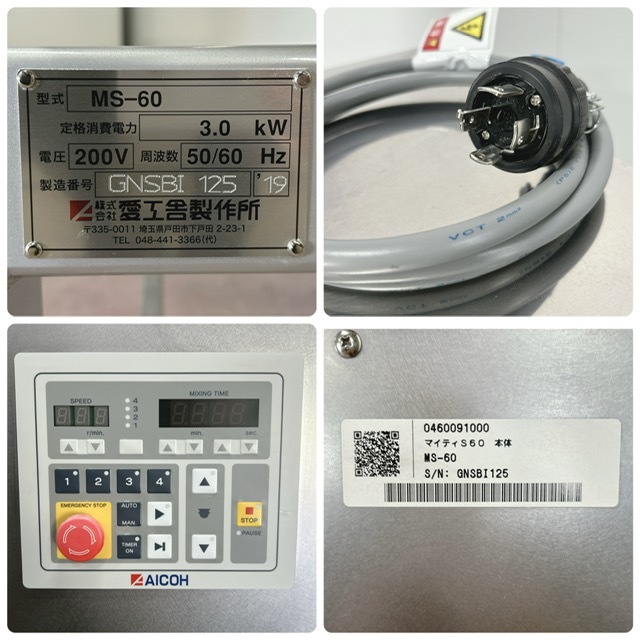 消費電力 3.0kW(撹拌モーター:2.2kW/昇降モーター:0.09kW)