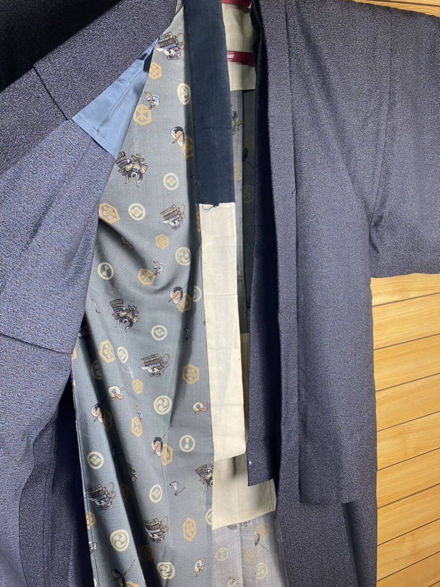 美品! 綿 ブラック 男着物 羽織着物襦袢セット 羽織 着丈 80 着物 着丈 135 襦袢 着丈 130