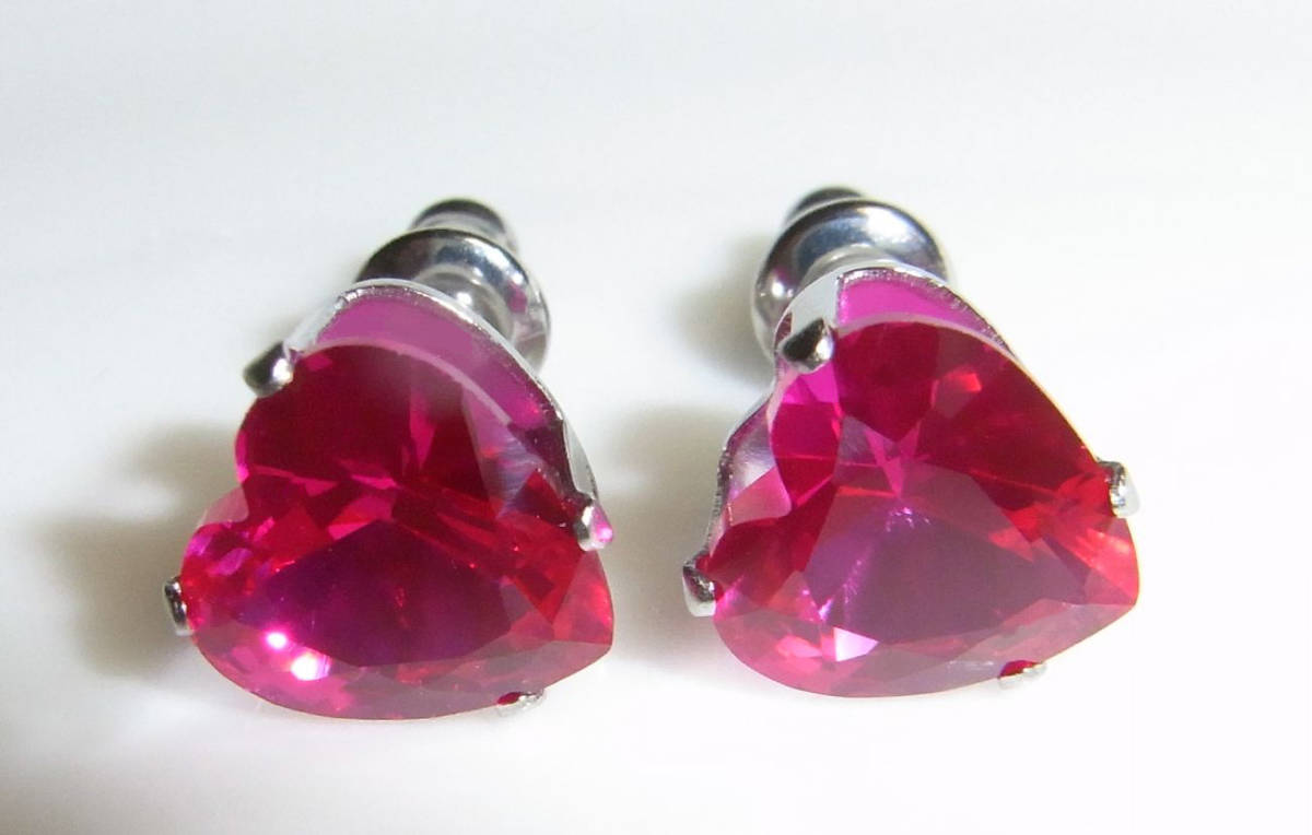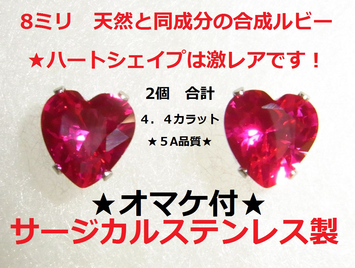 ★新品 4.4ct 大粒8ミリ ハート ルビー ピアス 天然同成分 ステンレス製★ | |||