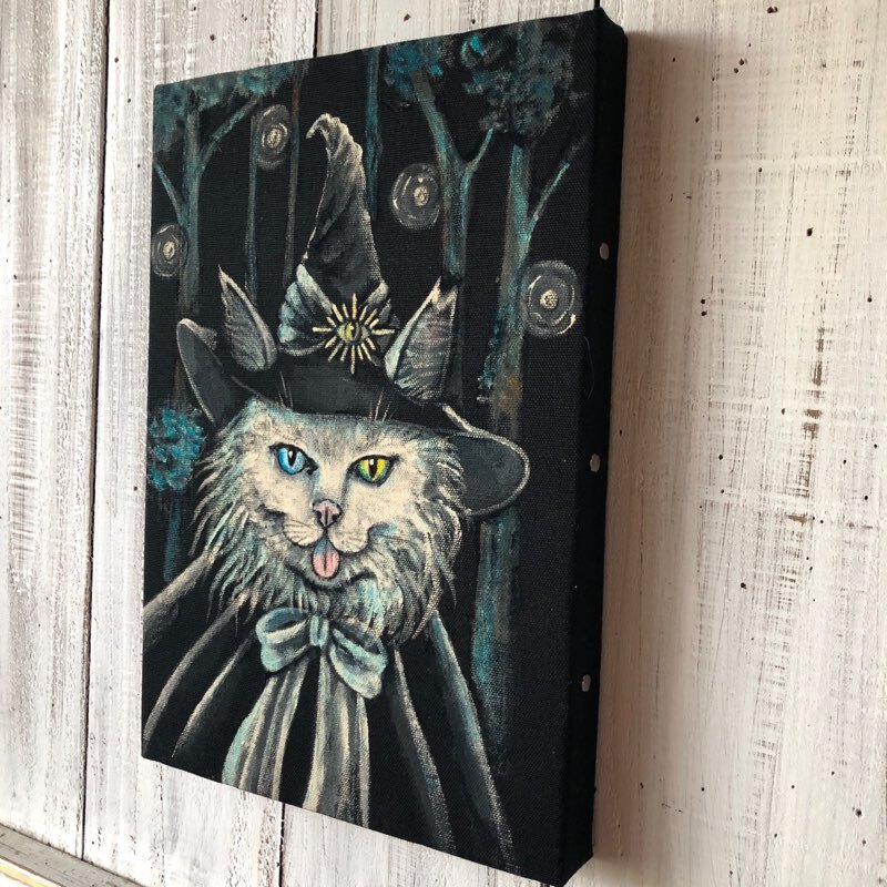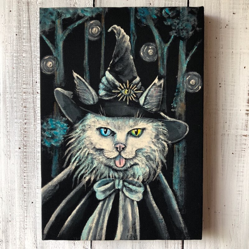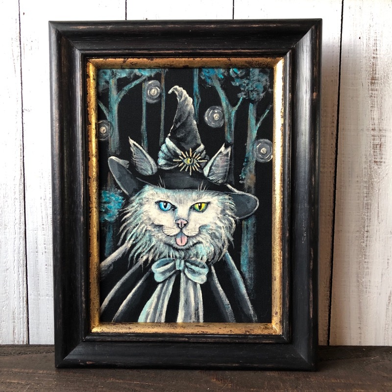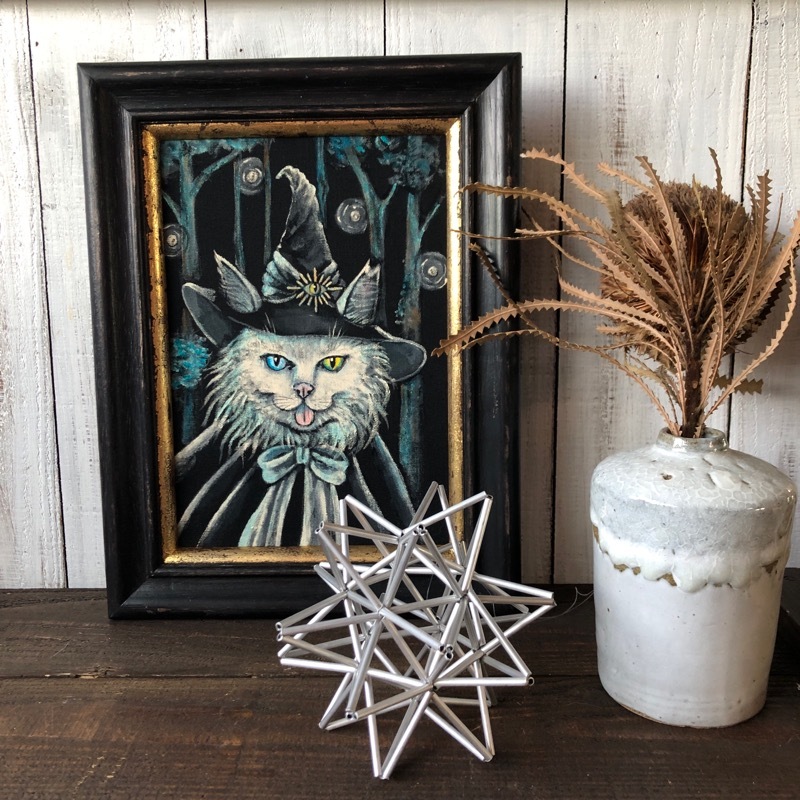 「魔導士ローリー」SMサイズ アート作品 原画 猫 徳島洋子作品 アクリル画