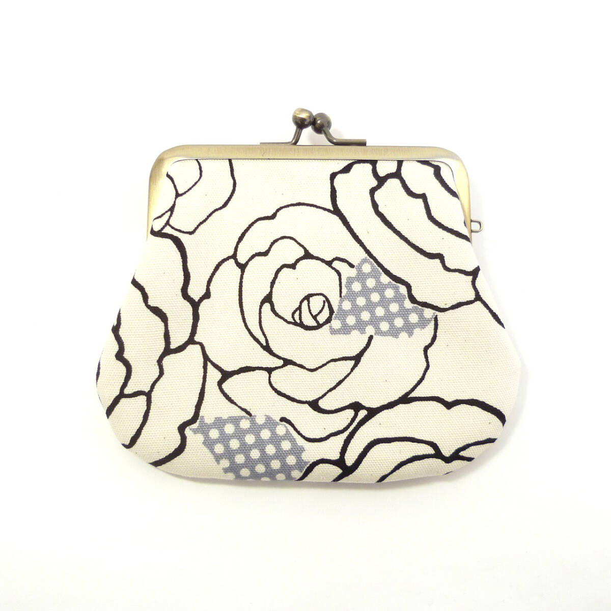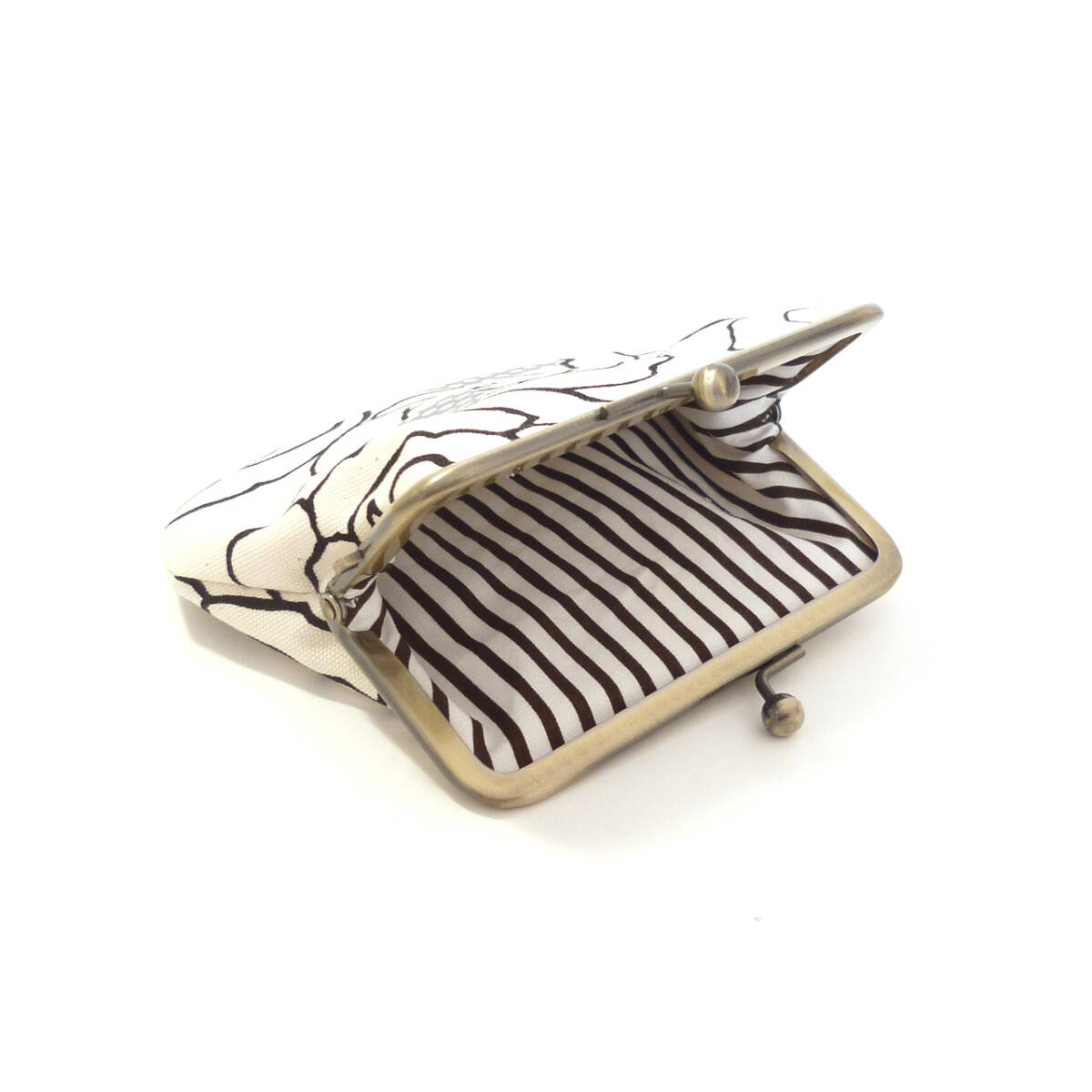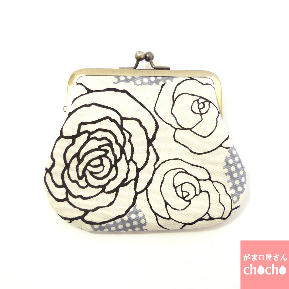 がま口 ポーチ 大きい薔薇 バラ 花柄 白 ミニポーチ ハンドメイド G133