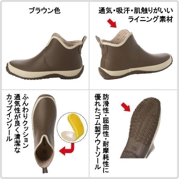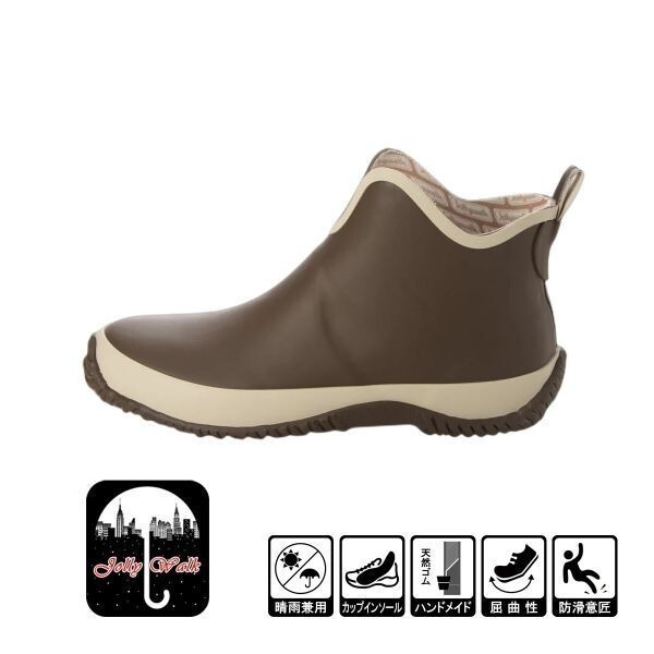 アウトレット レディース レインシューズ 22.5cm ブラウン レインシューズ 天然ゴム 防水 防滑底 耐摩耗性 屈曲性 耐候性 20089