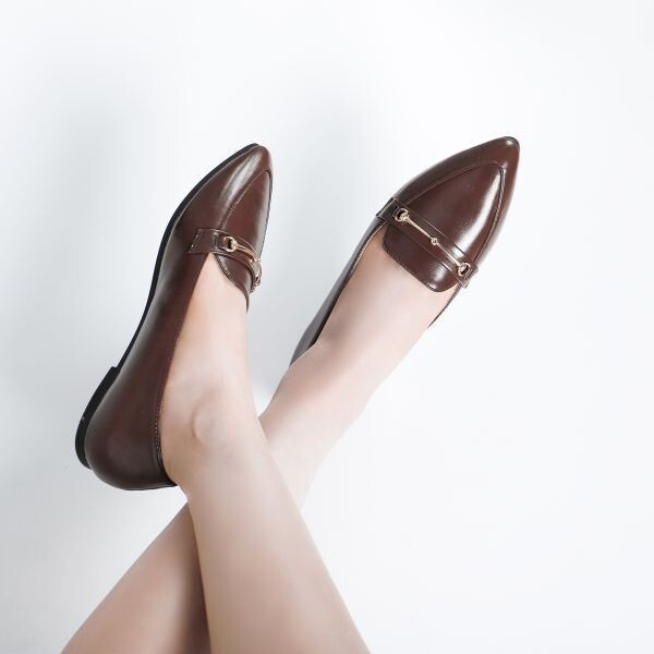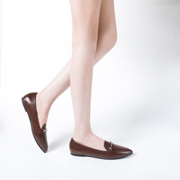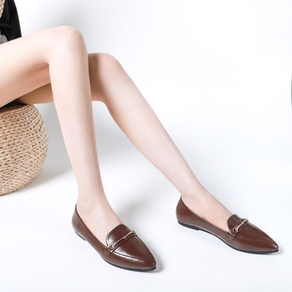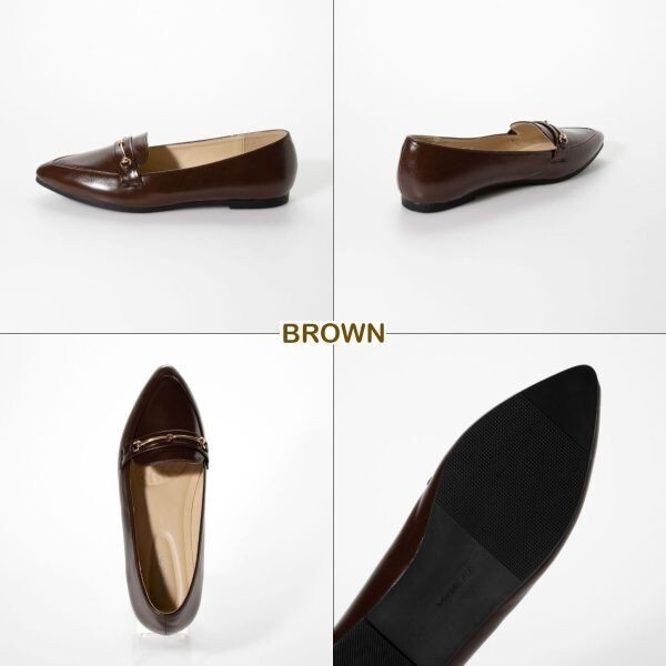 20442 アウトレット レディース フラットパンプス ブラウン スムース 24.0cm ローヒール パンプス ポインテッドトゥ バレエシューズ