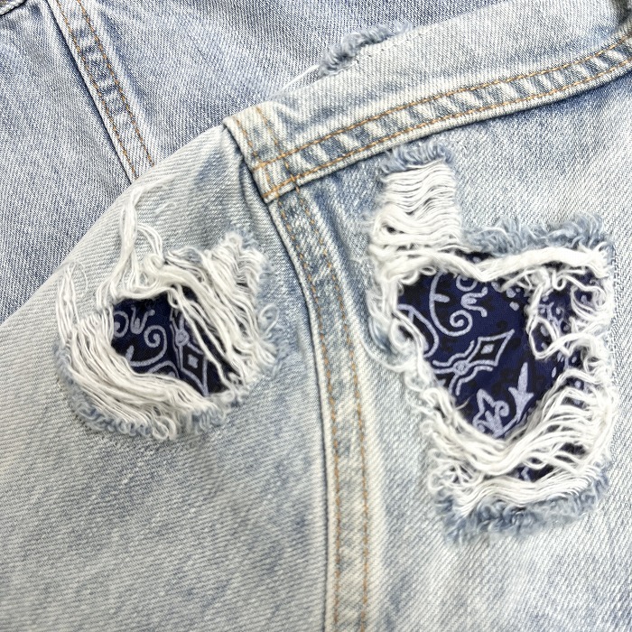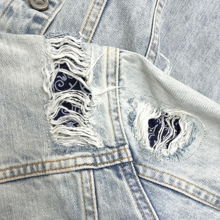 商品タイトル | ディーゼル DIESEL デニムジャケット トラッカージャケット ダメージ加工 USED加工 柄の当て布 長袖 綿100% M ブルー 青 レディース |
