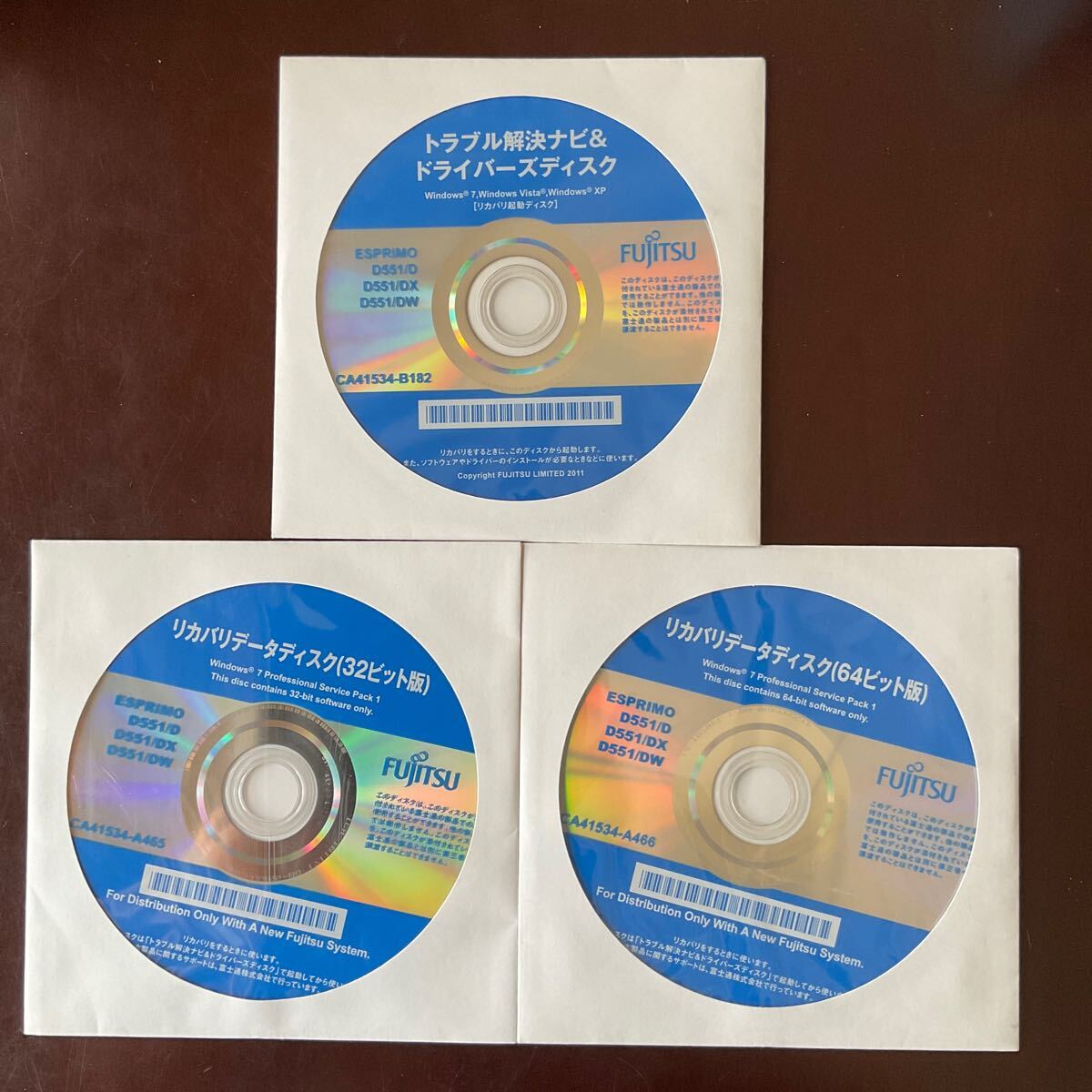 ◎(420-5) 富士通 ESPRIMO D551/D,D551/DX,D551/DW用 Win7 32/64bit リカバリディスク
