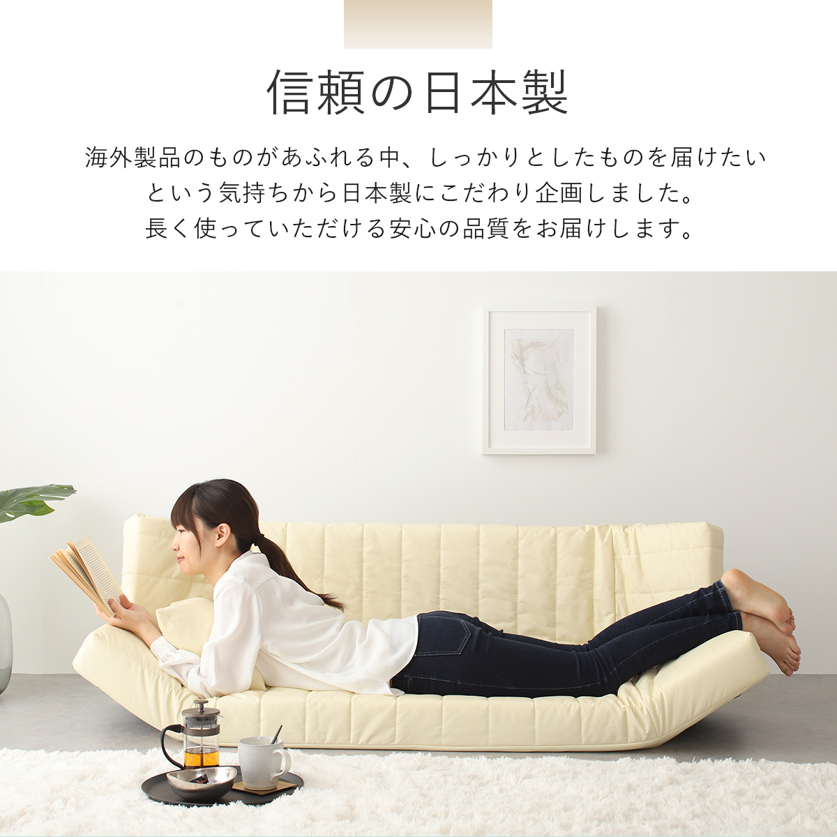 床に近いフロアソファは、開放感もあり、安心感も感じられます。