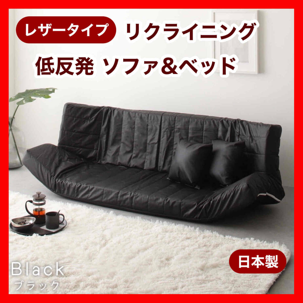 新品 レザー リクライニング ソファ ローソファ フロアソファ ベッド コンパクト ラブソファ 省スペース アイボリー ブラック 黒 2人 合皮