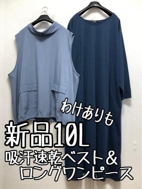 新品☆10Lブルー系♪吸汗速乾ベスト&カットソー地ワンピース♪わけありも☆x199