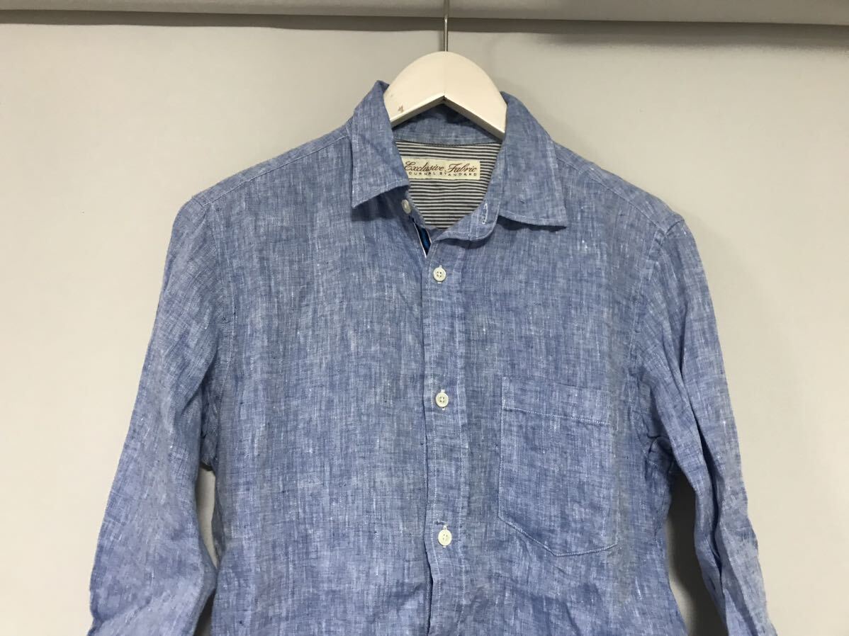 商品名:本物ジャーナルスタンダードJOUNALSTANDARDリネン麻7部丈長袖シャツメンズサーフミリタリーアメカジビジネススーツ青ブルーS