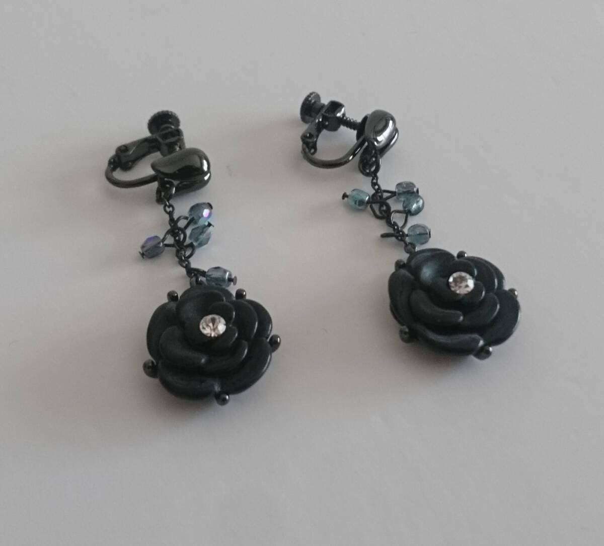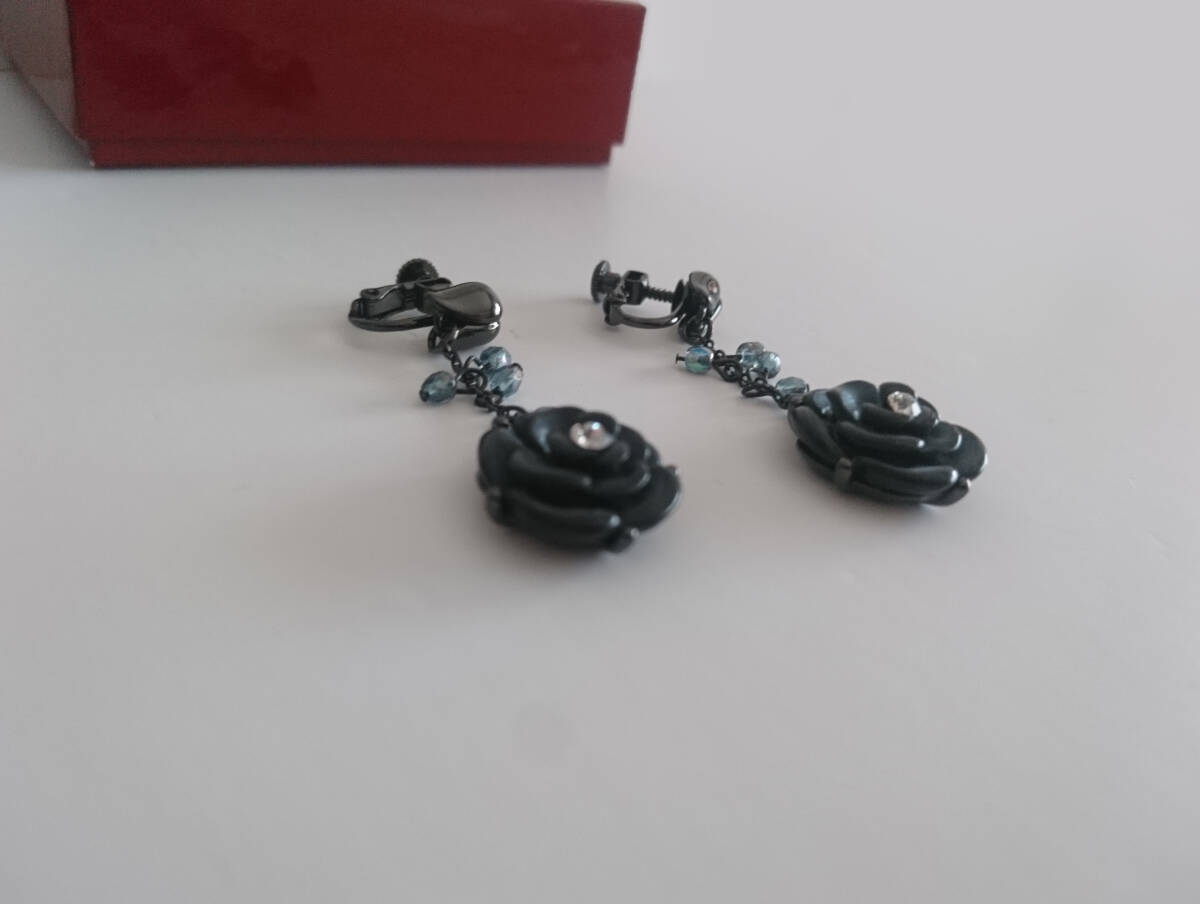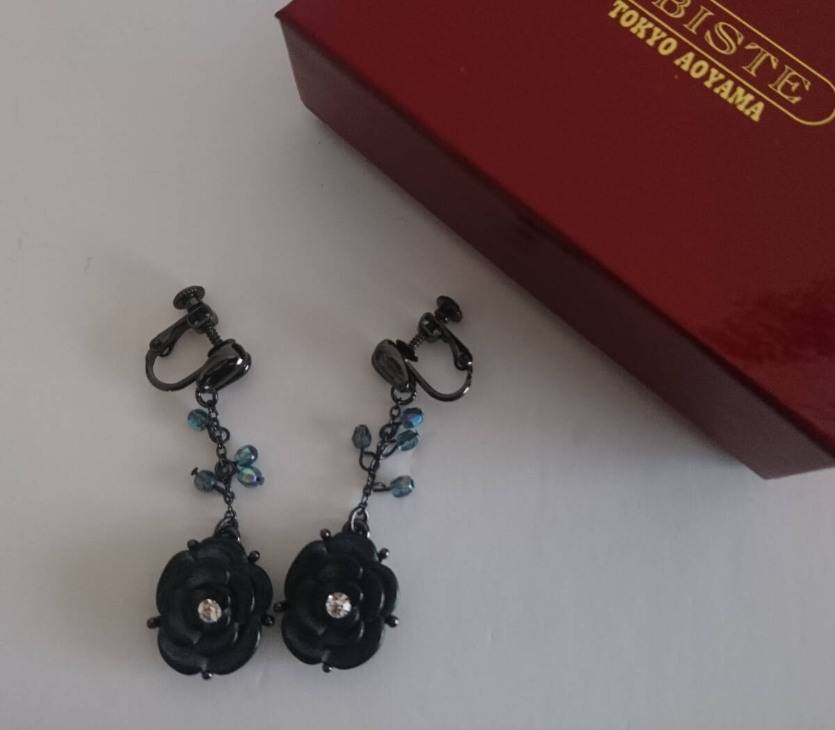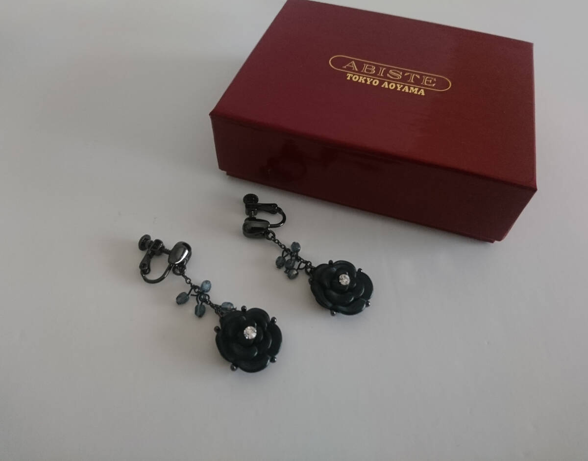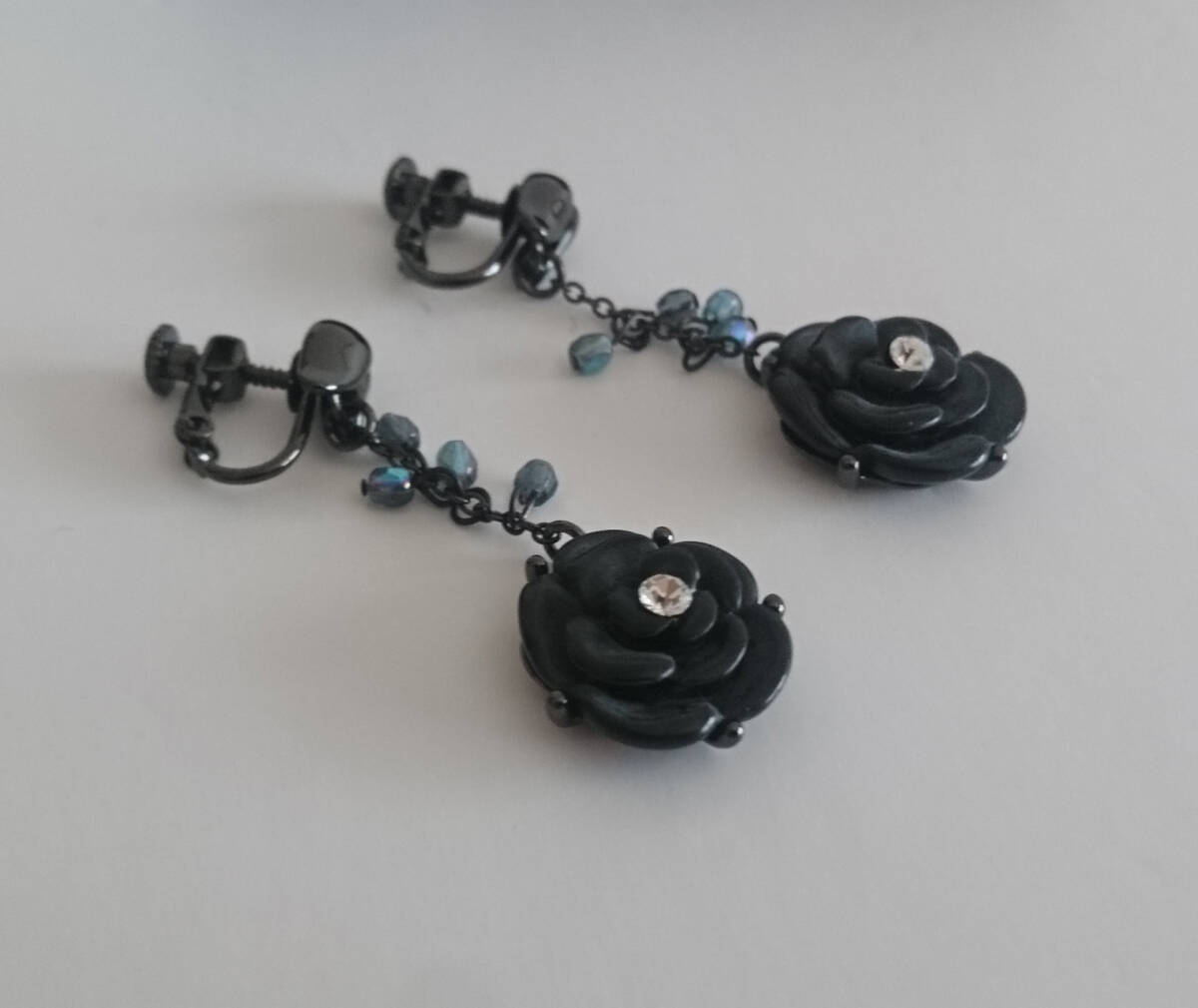 ABISTE アビステ イヤリング 薔薇 チェコビーズ ブラック ガンメタ 真鍮 ローズモチーフ