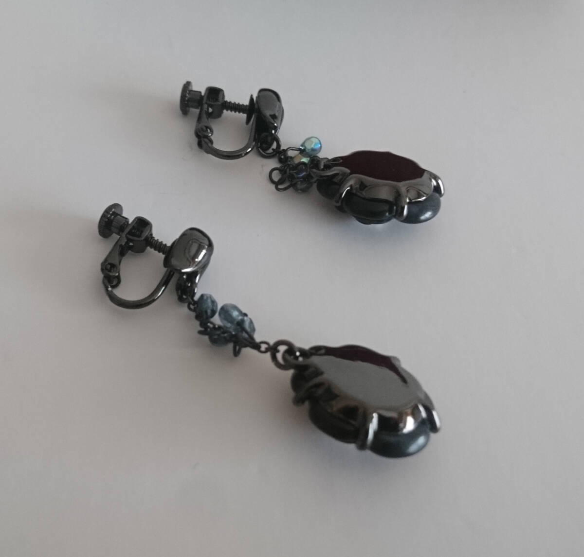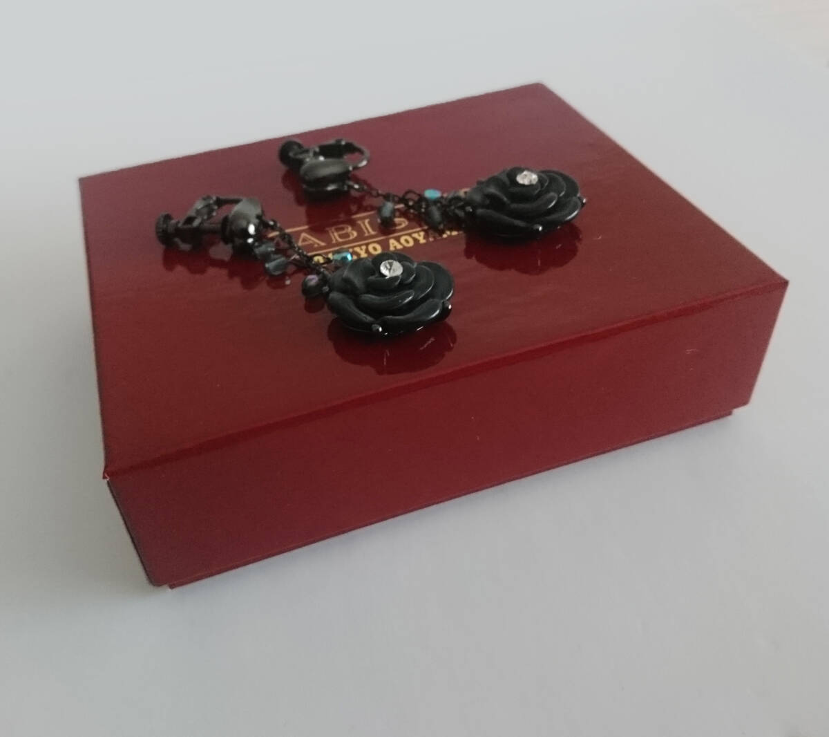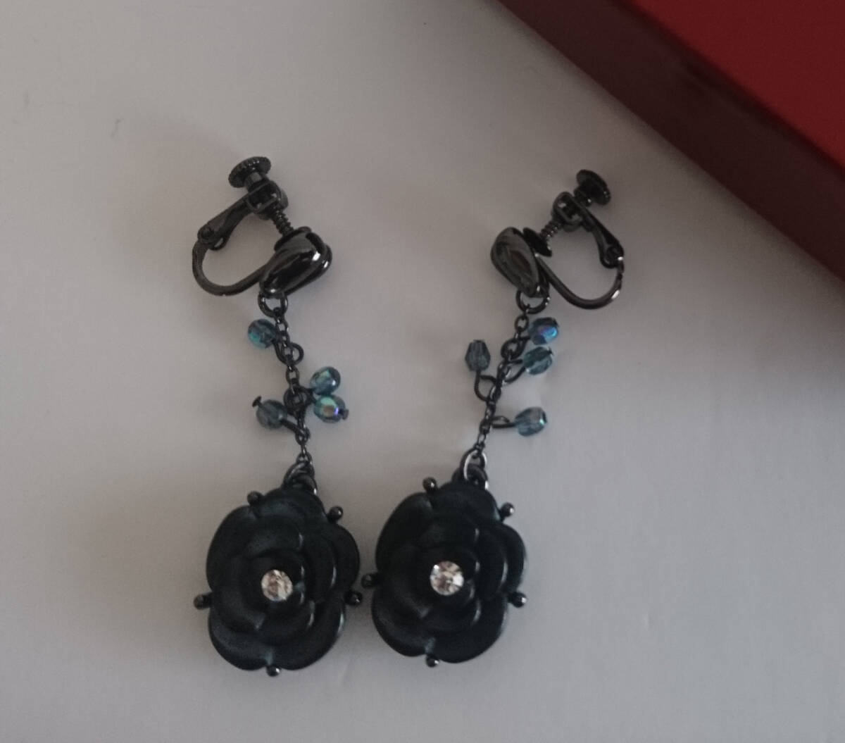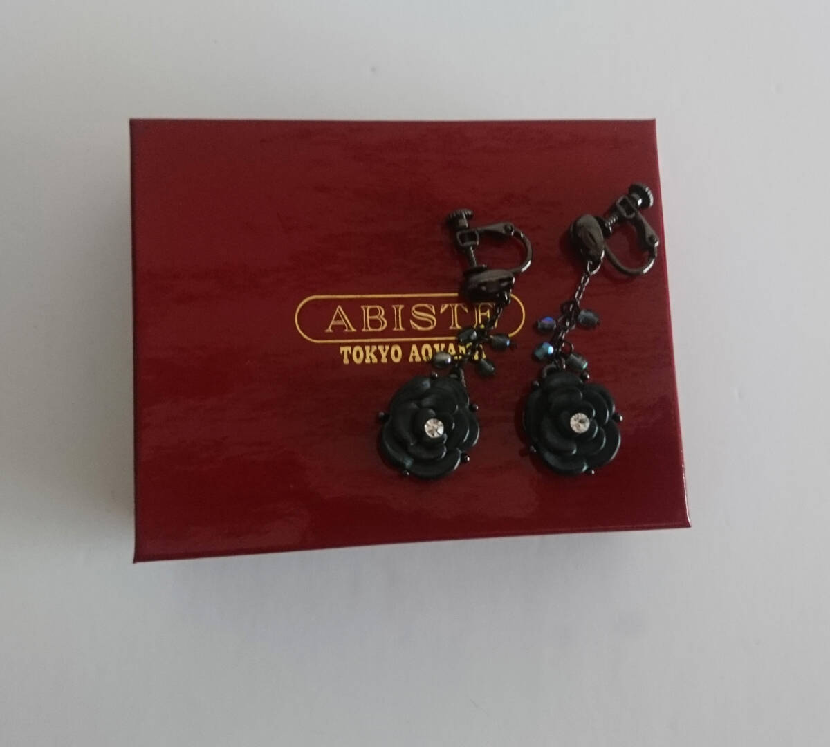 ABISTE アビステ イヤリング 薔薇 チェコビーズ ブラック ガンメタ 真鍮 ローズモチーフ