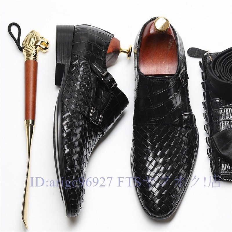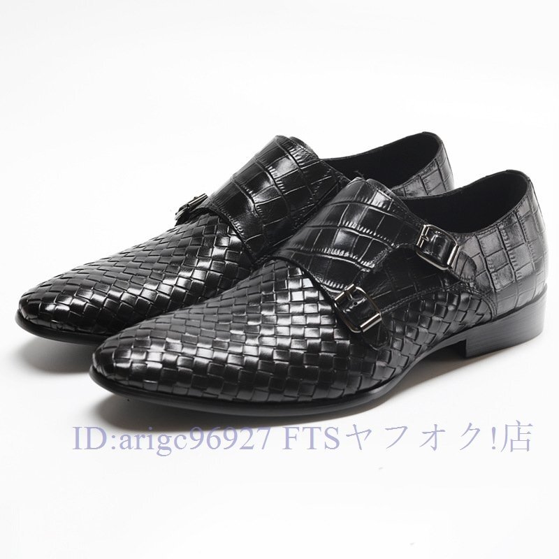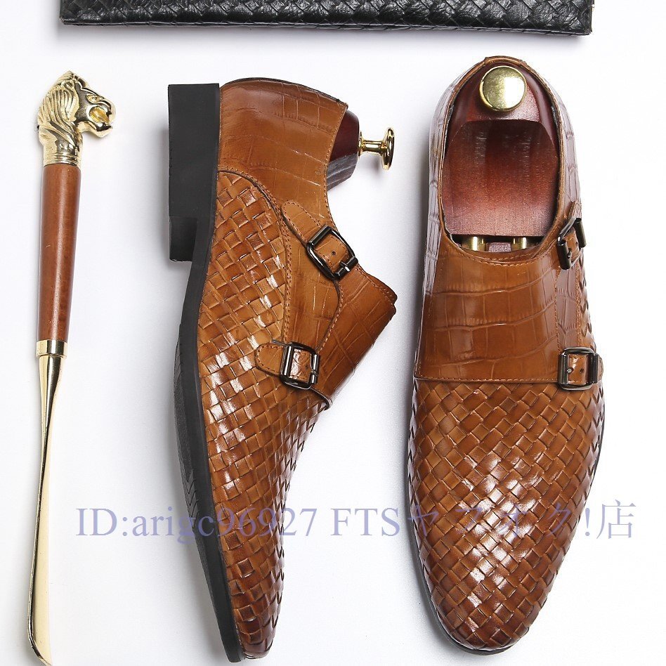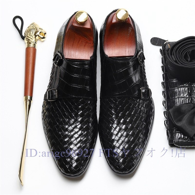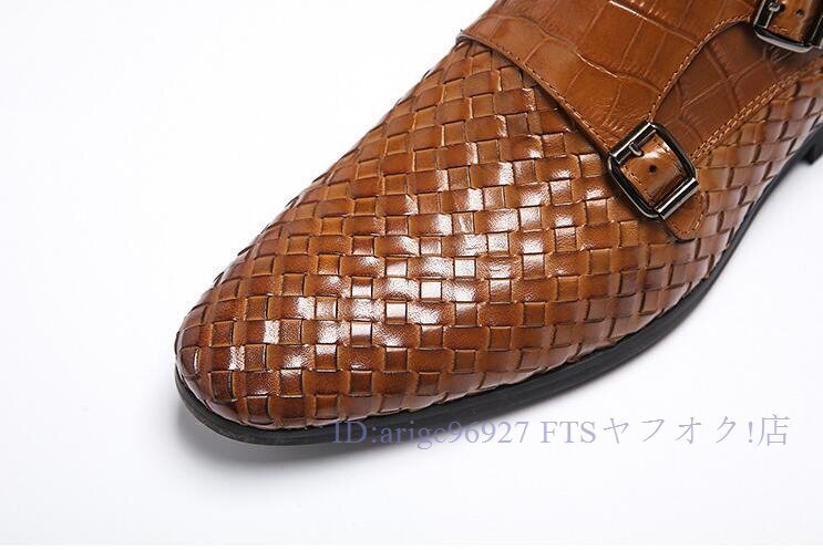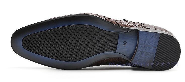 B1491新品メンズシューズ 牛革 ビジネスシューズ 編み込み レザーシューズ 職人手作り紳士靴 ノースリップ 本革 トップレイヤー二色