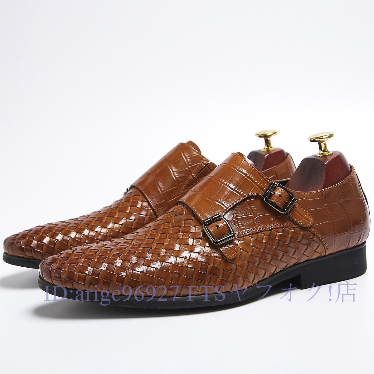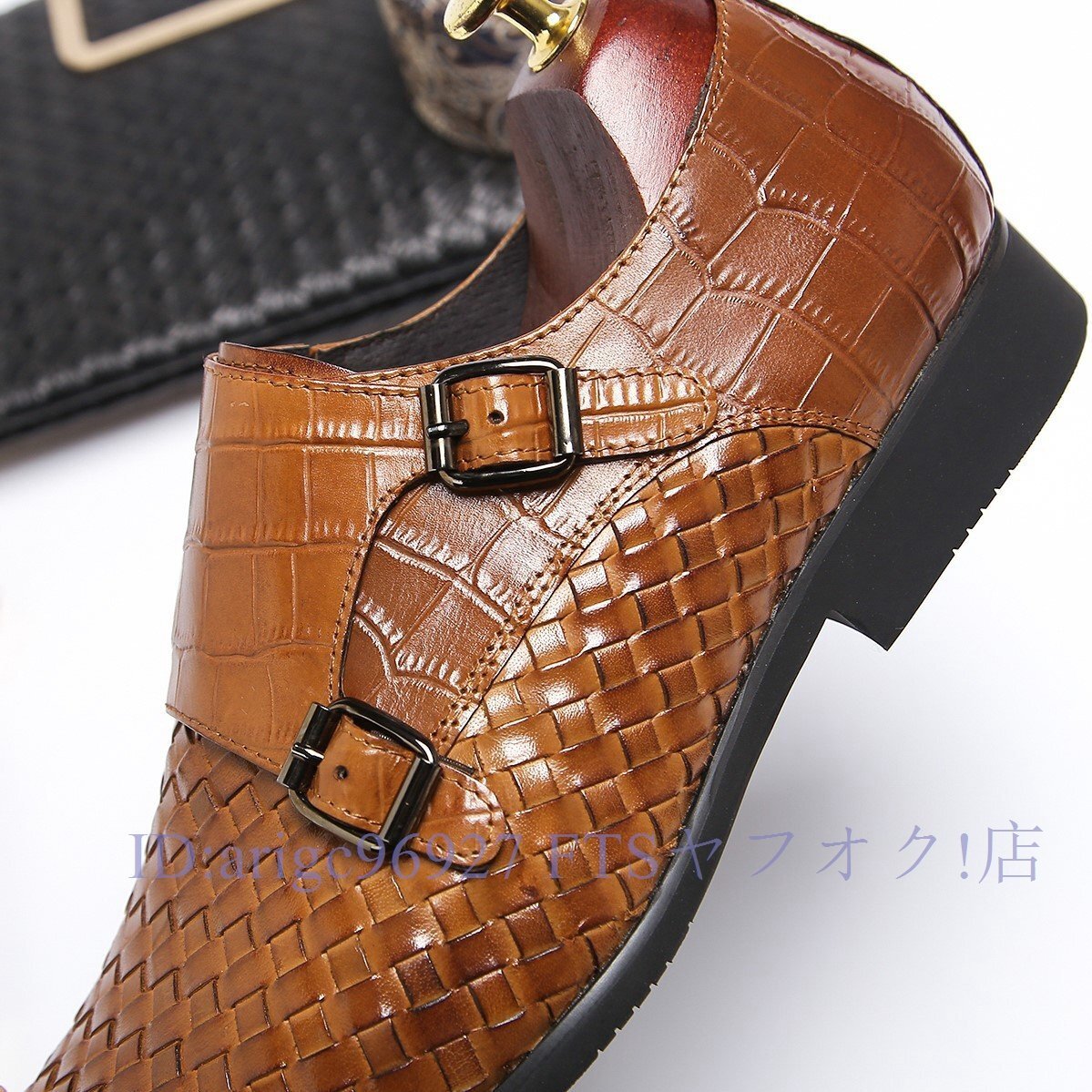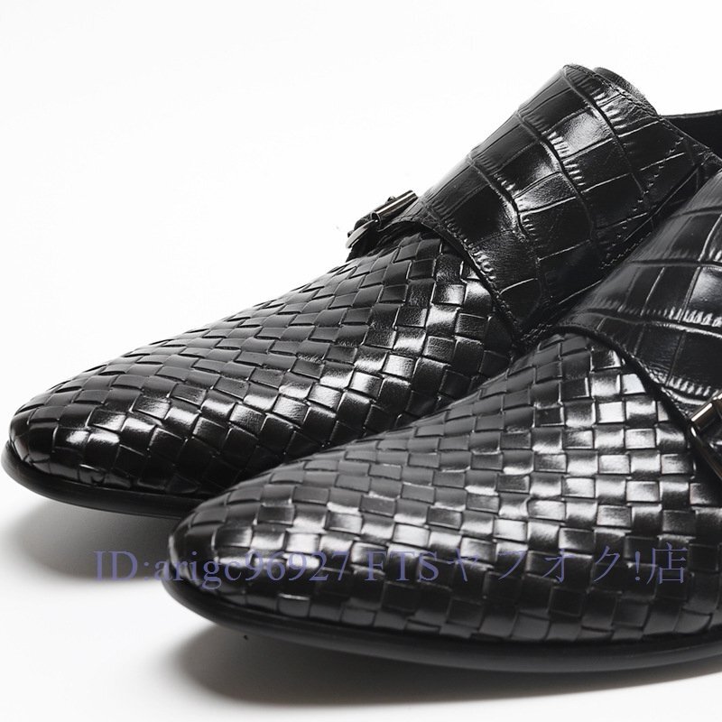 B1491新品メンズシューズ 牛革 ビジネスシューズ 編み込み レザーシューズ 職人手作り紳士靴 ノースリップ 本革 トップレイヤー二色