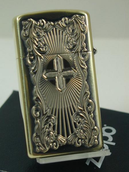 Zippoアラベスク マリア・ディープ彫刻クロス真鍮 スリム両面柄