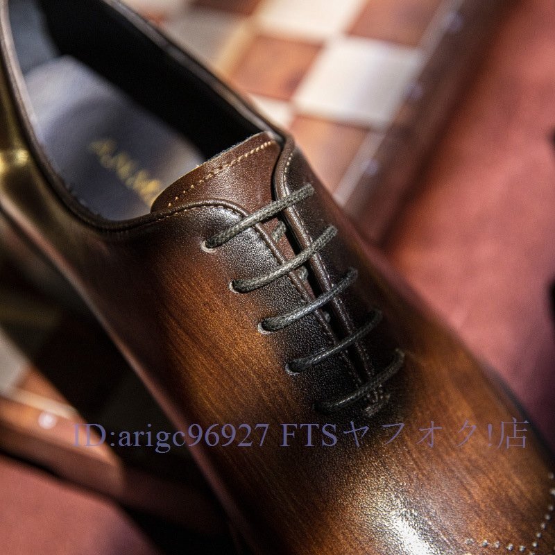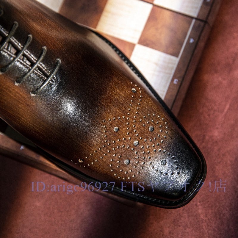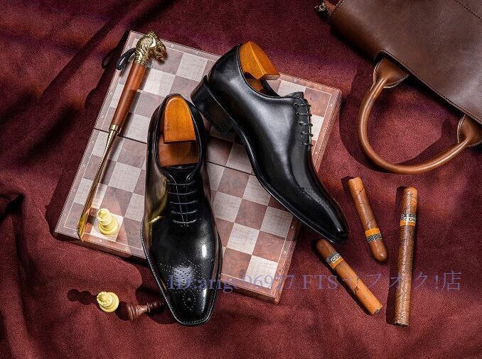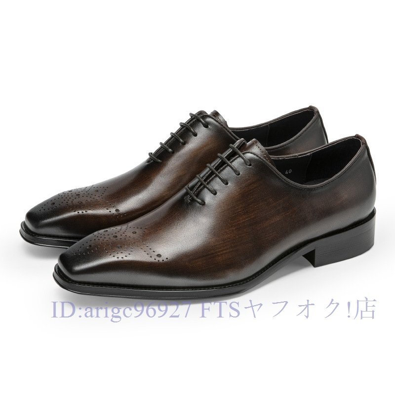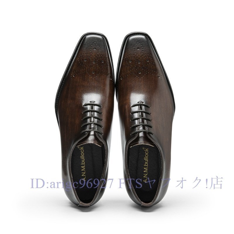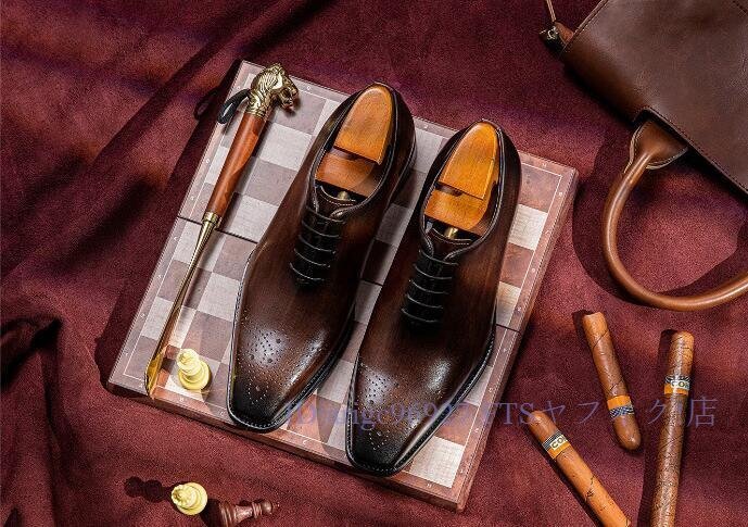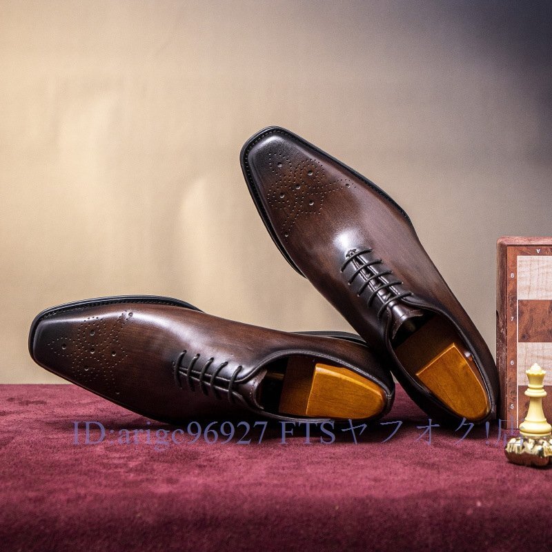B2115☆新品高級 高品質本革 希少 手塗仕上げ彫り ビジネスシューズ 手作り 牛革 メンズ レザーシューズ 24.5cm ~27cm コーヒー