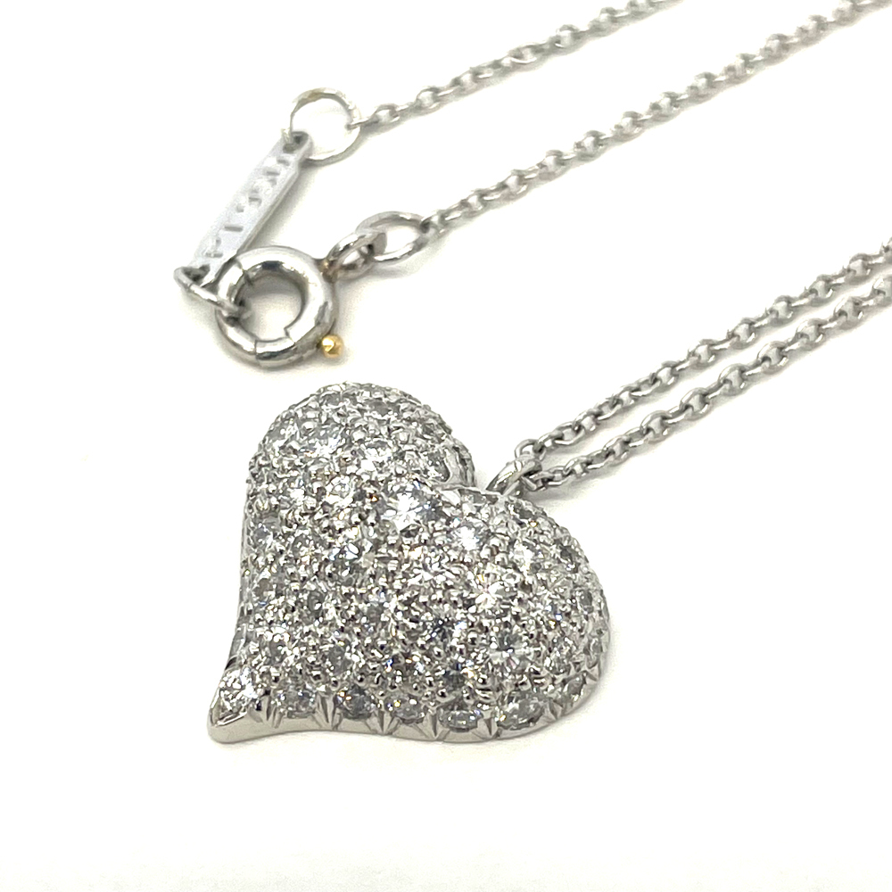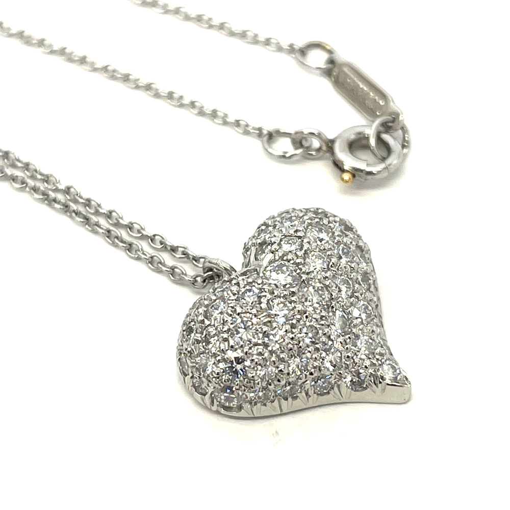 【中古】TIFFANY&Co.  ティファニー ピンチドクローズ ハートネックレス ダイヤ Pt950