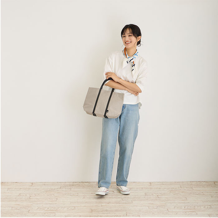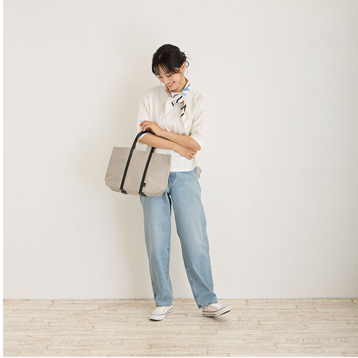 商品説明 | ・・シンプルできれいめの軽いキャンバストート。 ・コットンとレザーハンドルのコンビが魅力! ・質の良いまいにちを… ・オールシーズン使えるシンプルなデザイン。 ・軽いのに自立するしっかりしたつくり。 ・ビジネスシーンにも使える大人っぽい仕上がりを意識しています。 ・コットンキャンバスの裏地にラミネート加工を施しました。 ・汚れに強く、荷物の出し入れもスムーズです。 ・たくさん荷物が入って収納力も抜群です。 ・A4サイズのファイルも入ります。 ・ランチボックス、ボトル、大き目ポーチなどらくらく収納! ・2つ分かれた大きめな内ポケットが小物の仕分けに便利。 ・中身もパッと確認できます。 ・ドットボタン開閉で、中身を隠せて安心です。 ・背面にあるルーポケットには、すぐ取り出したいものを入れておくのに便利です。 ・パスケースなどの小物の収納に。 ・お出かけを心地よく。 ・まいにち使うほどに “グッドデザイン” を実感できます。 |