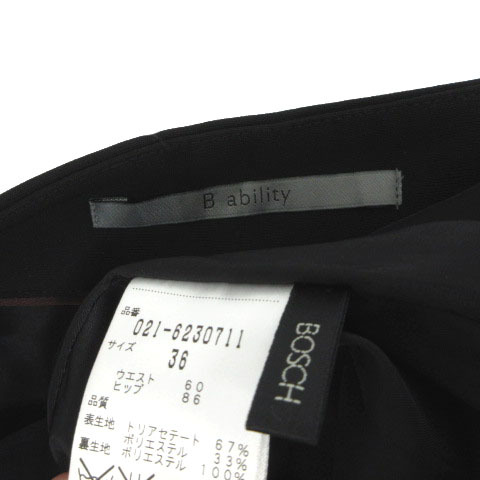 ボッシュ ビーアビリティ BOSCH B ability パンツ ワイドパンツ タック クロップド丈 ガウチョ スカンツ 日本製 ブラック 黒 36
