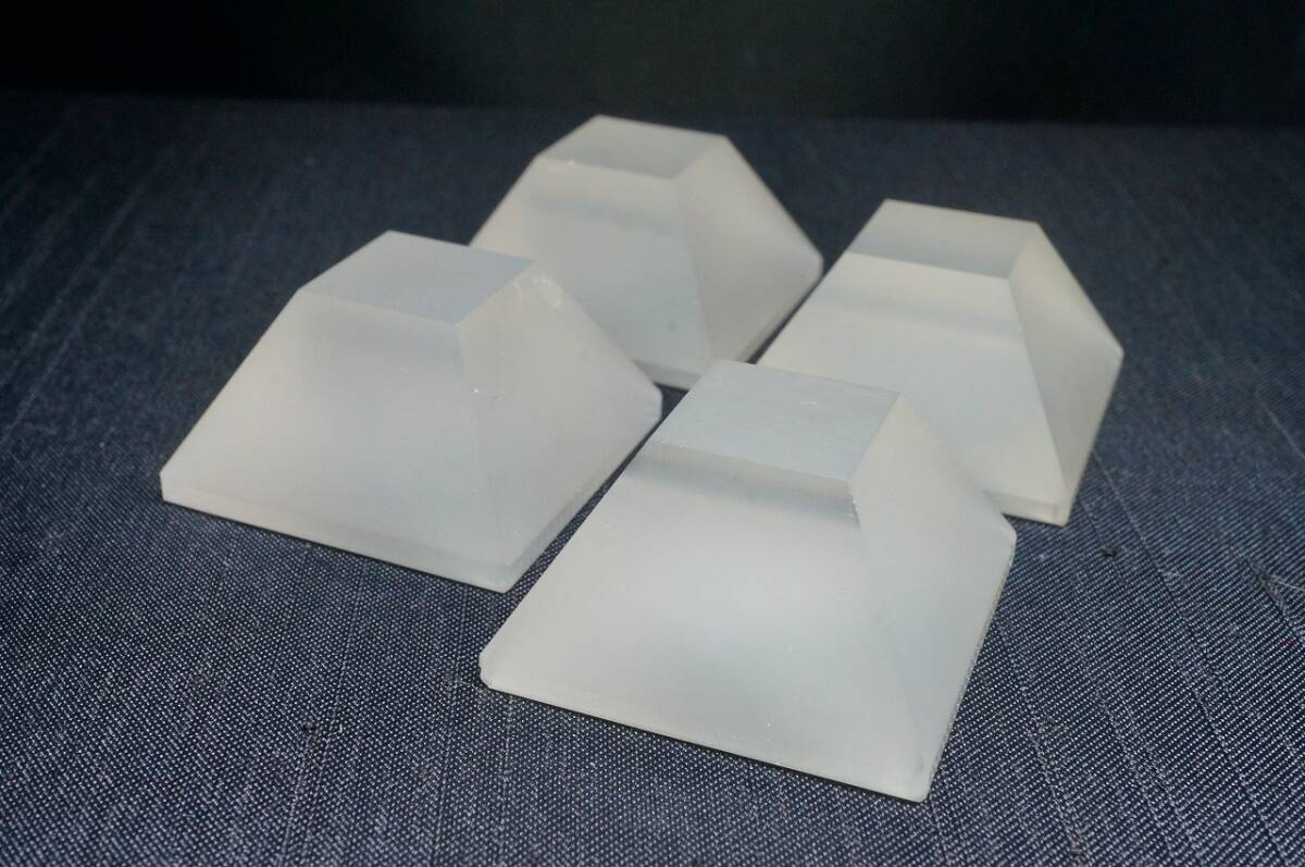 | 希少!【甲州水晶貴石細工の伝統工芸士が製作】上質人工水晶オーディオ用インシュレーター 28.0×28.0×15.2mmサイズ 4個セット | |||||||||||