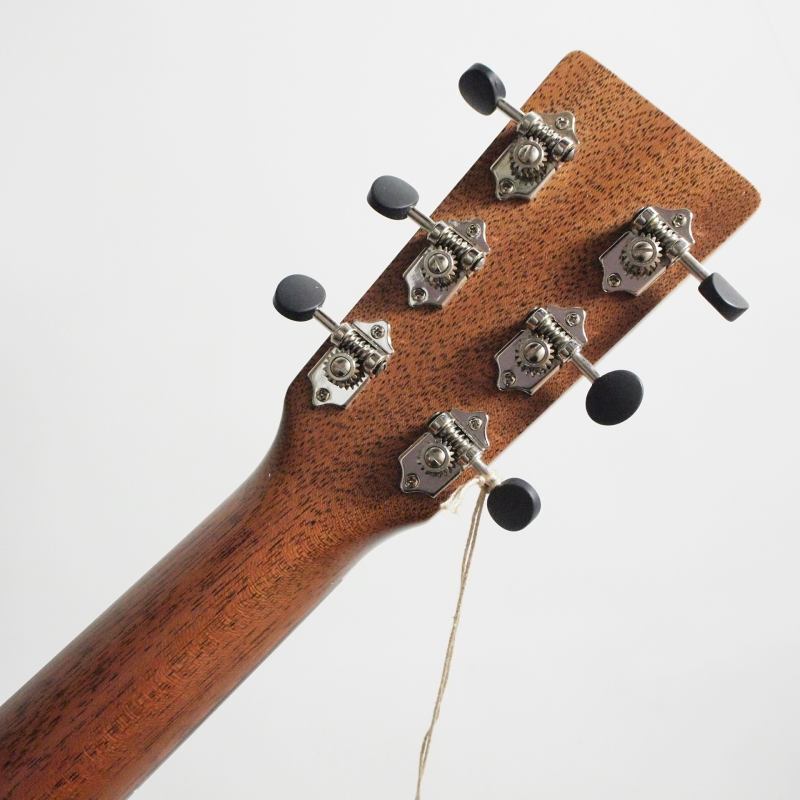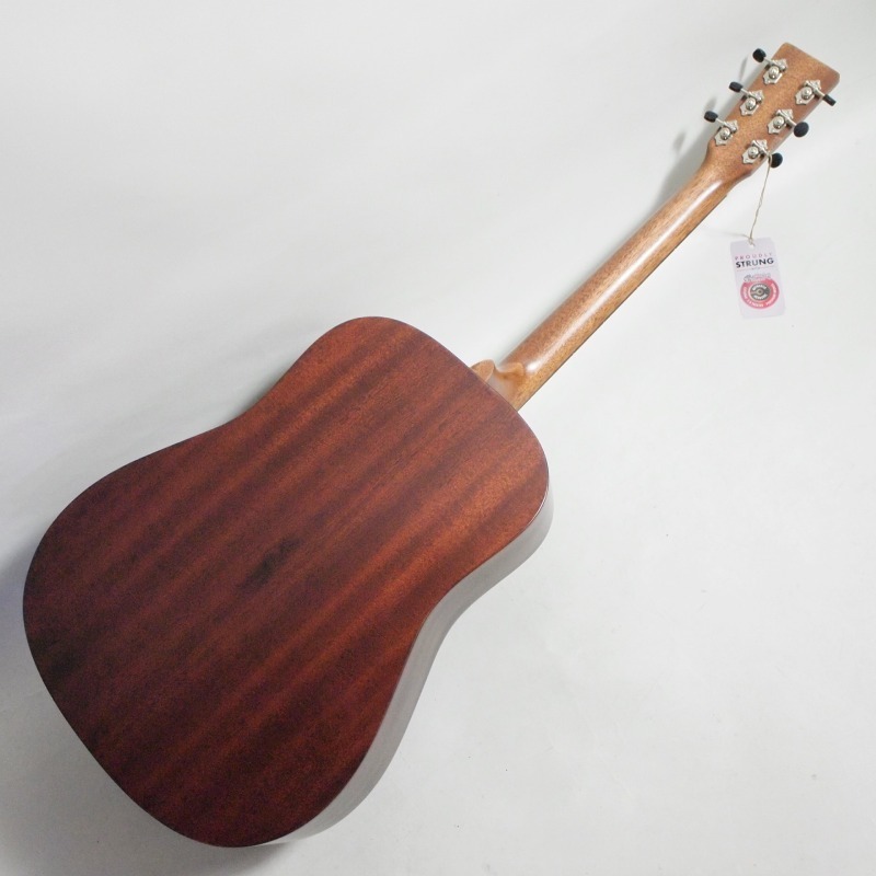 14フレットのドレッドノートで、バックとサイドはサペリ材、トップはマホガニー材、ブレイシングはノンスキャロップです。